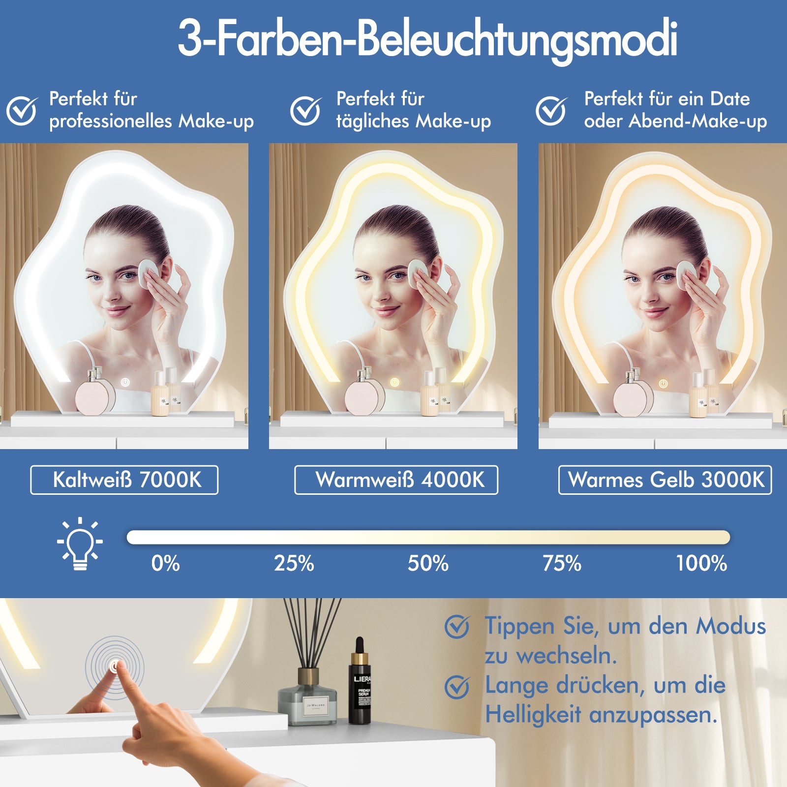 Jeden Morgen verbringen wir viele Minuten damit, uns zurechtzumachen, um für den Alltag bereit und präsentabel auszusehen. Das kann jedoch sehr mühsam sein, wenn man wenig Zeit hat und das Badezimmer überfüllt ist. Wenn Sie immer noch um einen Platz in Ihrem Badezimmer kämpfen oder minutenlang vor dem Spiegel stehen, um sich zu kleiden, sollten Sie sich unser Alfordson-Schminktisch-Set überlegen.