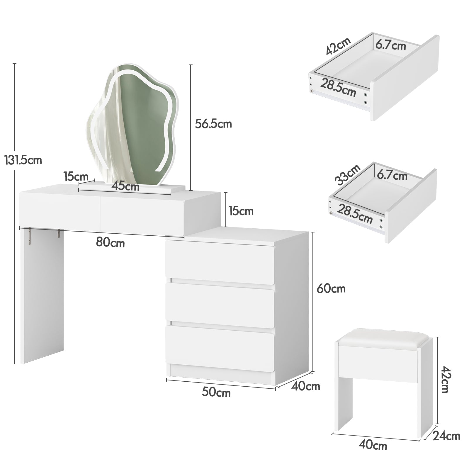 ALFORDSON Frisiertisch-Hocker-Set Schminktisch LED Spiegel Schrank Schlafzimmer