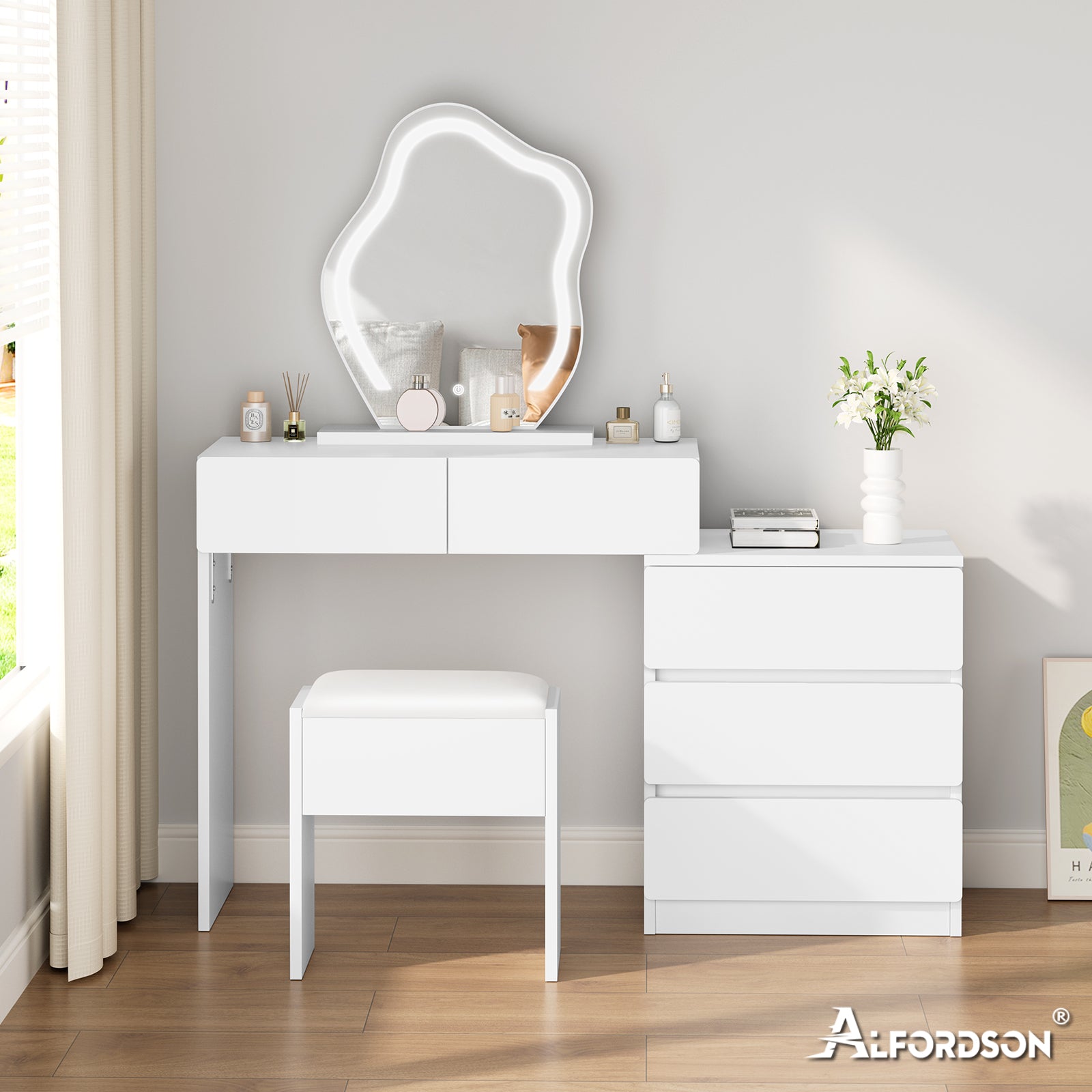 Machen Sie immer eine gute Figur. Genießen Sie unser Alfordson Schminktisch-Set und genießen Sie die Lebensqualität, die Sie verdienen!