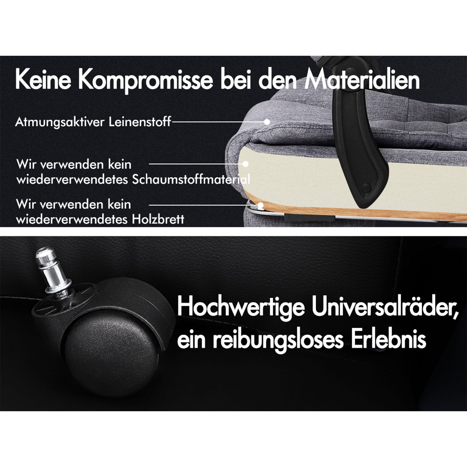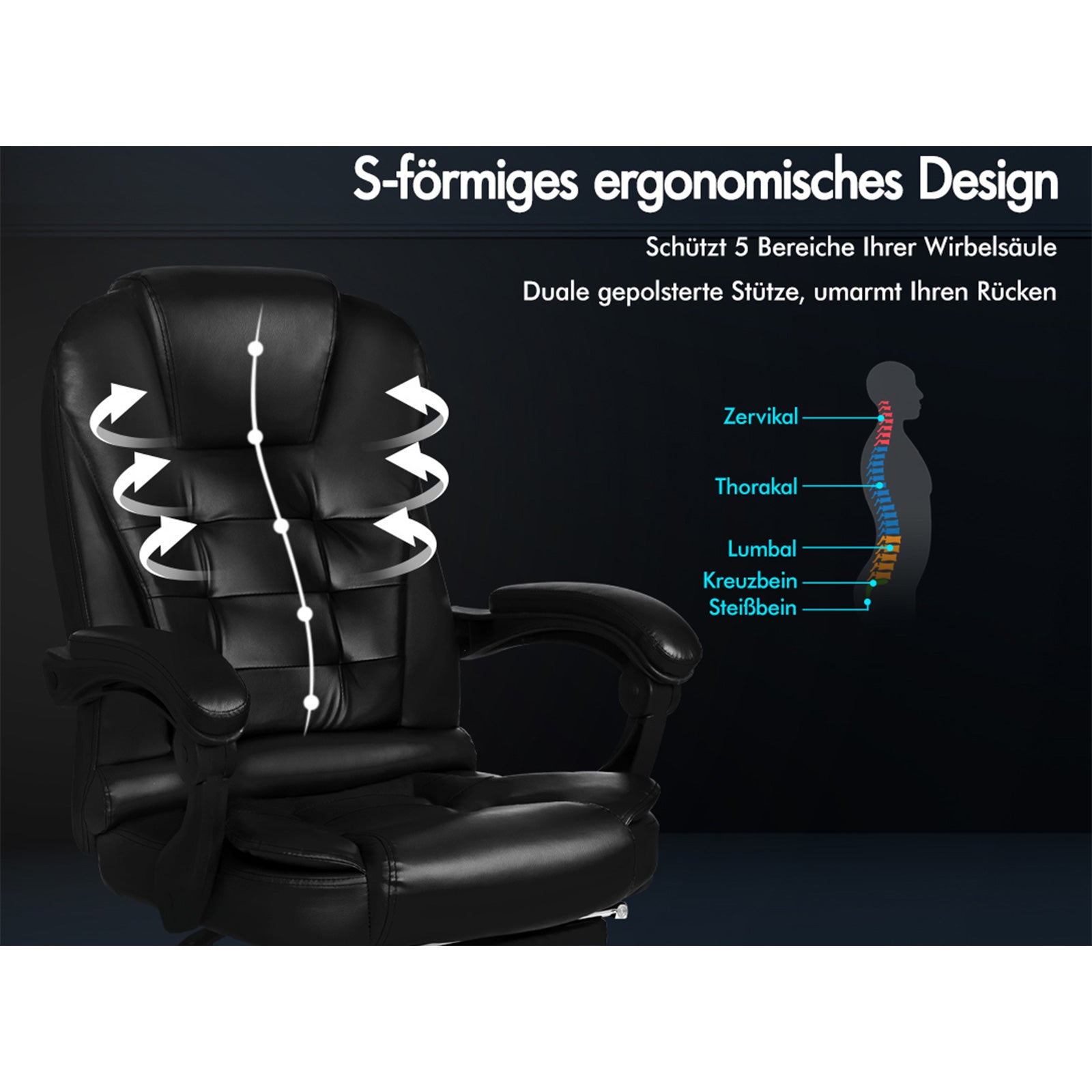 * Alfordson Massage-Bürostuhl mit Fußstütze * Exklusiver Komfort für Sie* Eine Belohnung bei der Arbeit * S-Kurven-Design, optimale Passform für Ihren Körper * Keine Kompromisse bei den Materialien, wir verwenden keinen recycelten Schaumstoff* Großzügige Schaumstoffpolsterung, wir schneiden nicht zu dünn, um Geld zu sparen * Bis zu 150 Grad verstellbare Rückenlehne * Möglichkeit zur Arretierung der Liegeposition * Breitere und höhere Rückenlehne, wir schneiden sie nicht ab, um Kosten zu sparen* Einziehbare, gepolsterte Fußstütze* Hochwertige Universalräder für ein reibungsloses Erlebnis * Deluxe-Neigungsverstellung * Ganzteiliger Formschaum, bessere Gewichtsverteilung und Unterstützung* Reibungslose 360-Grad-Schwenkbewegung * Deluxe Armlehnen aus PP-Kunststoff mit Polsterung, breit und stützend * Hochelastischer Schaumstoff * Beseitigt Druck auf Rücken und Schultern * Stabiler Chromsockel, der nicht so leicht schmutzig wird wie der Kunststoffsockel * Ideal für den Einsatz im Haushalt und im Gewerbe