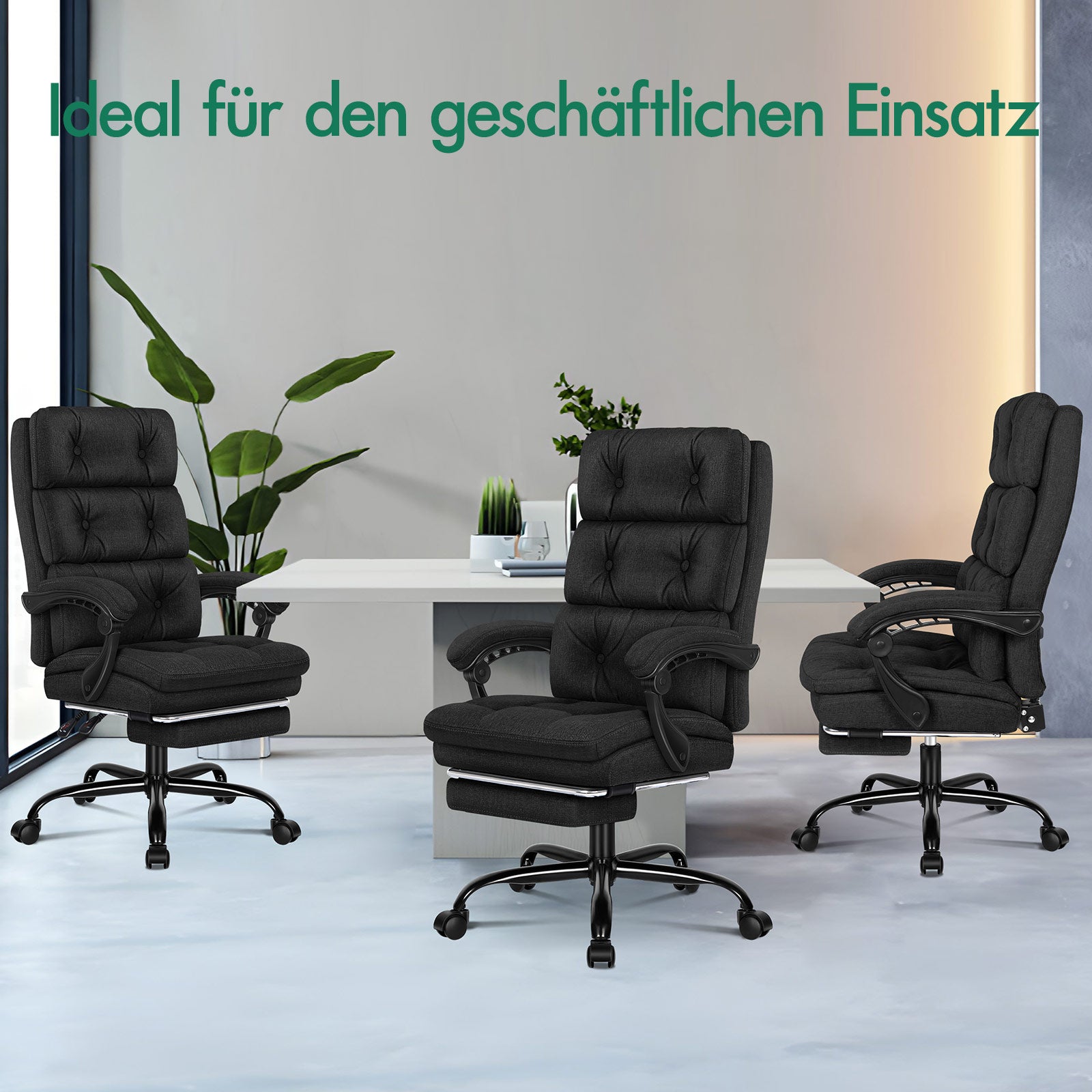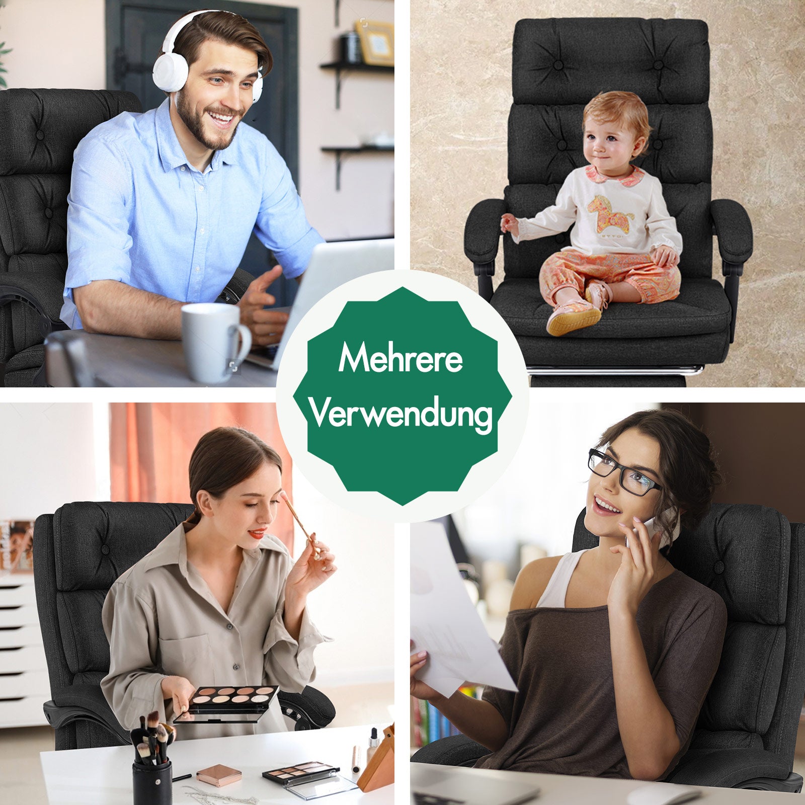 Specifications * Intertek approved high-quality linen fabric * SGS approved gas lift, no fear of explosions * TUV approved castors * Three-layer seat: linen fabric + elastic foam + wooden board * We do not use recycled foam or wooden boards * High weight capacity: 180kg * Warranty: 2 years * Color: black