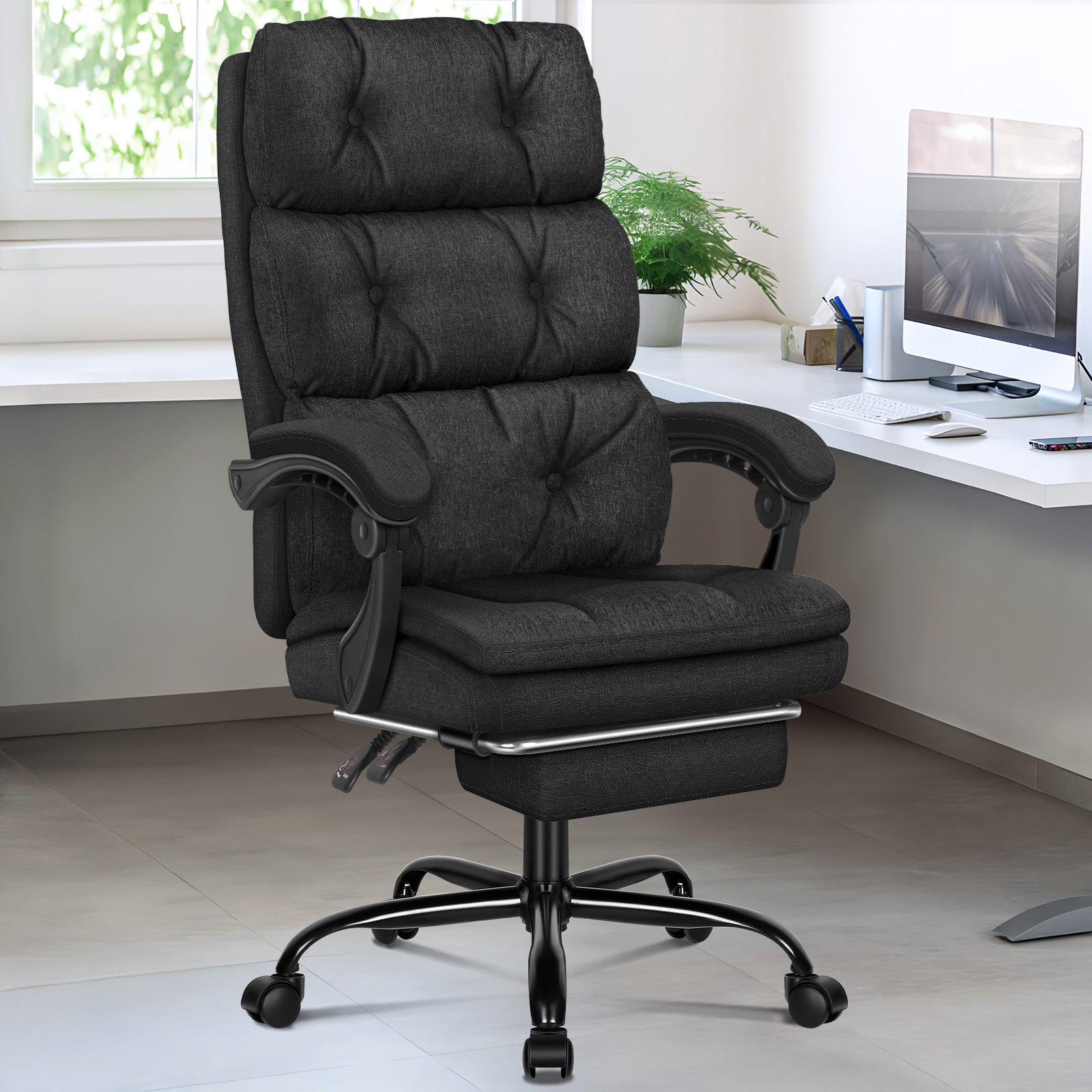 * Button-stitched, classic Chesterfield design, luxury and timeless grace * Dual-layer high back with luxurious upholstery * Ergonomic design to fully contour your body shape * Extra-large cushion for better lumbar support * Up to 150 degrees adjustable backrest * Can be locked in a reclining position * Extendable padded footrest * Premium universal wheels * Smooth 360 degree rotation * Double-stitched upholstery * Integrated lumbar and back support * Deluxe PP plastic armrests with padding, wide and supportive * High resilience foam * Eliminates back and shoulder pressure * Black powder-coated chrome base, classic and less prone to soiling * Ideal for home offices, boardrooms, and business purposes