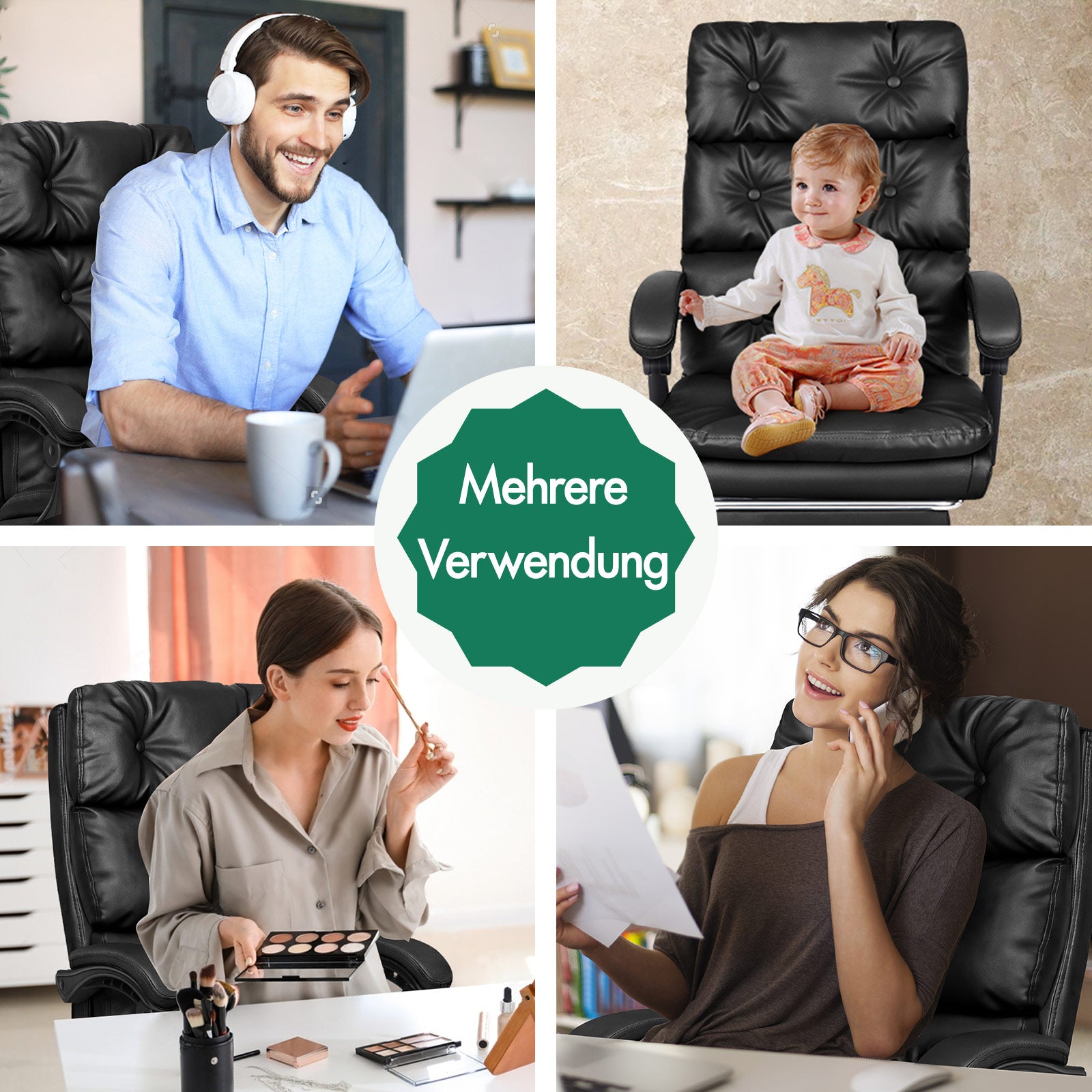 Spezifikationen * Von Intertek zugelassenes, hochwertiges PU-Leder * SGS-zugelassener Gaslift, keine Angst vor Explosionen * TÜV-zugelassene Lenkrollen * Dreischichtiger Sitz: PU-Leder + elastischer Schaumstoff + Holzbrett * Wir verwenden keinen recycelten Schaumstoff oder Holzbretter * Hohe Gewichtskapazität: 180kg * Garantie: 1 Jahr * Farbe: schwarz