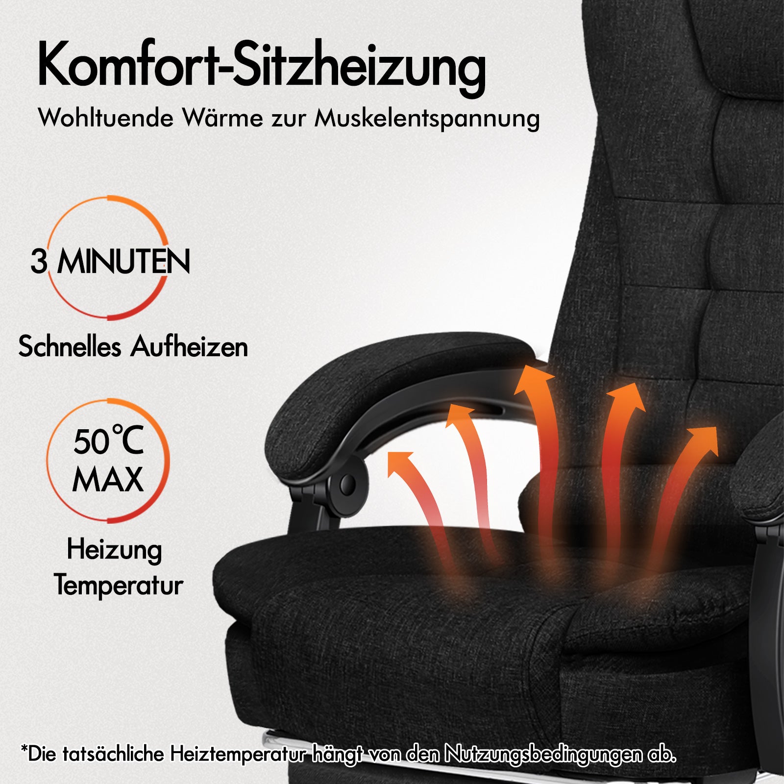 Silla de oficina de masaje ALFORDSON, asiento ejecutivo para computadora de tela con calefacción, color negro