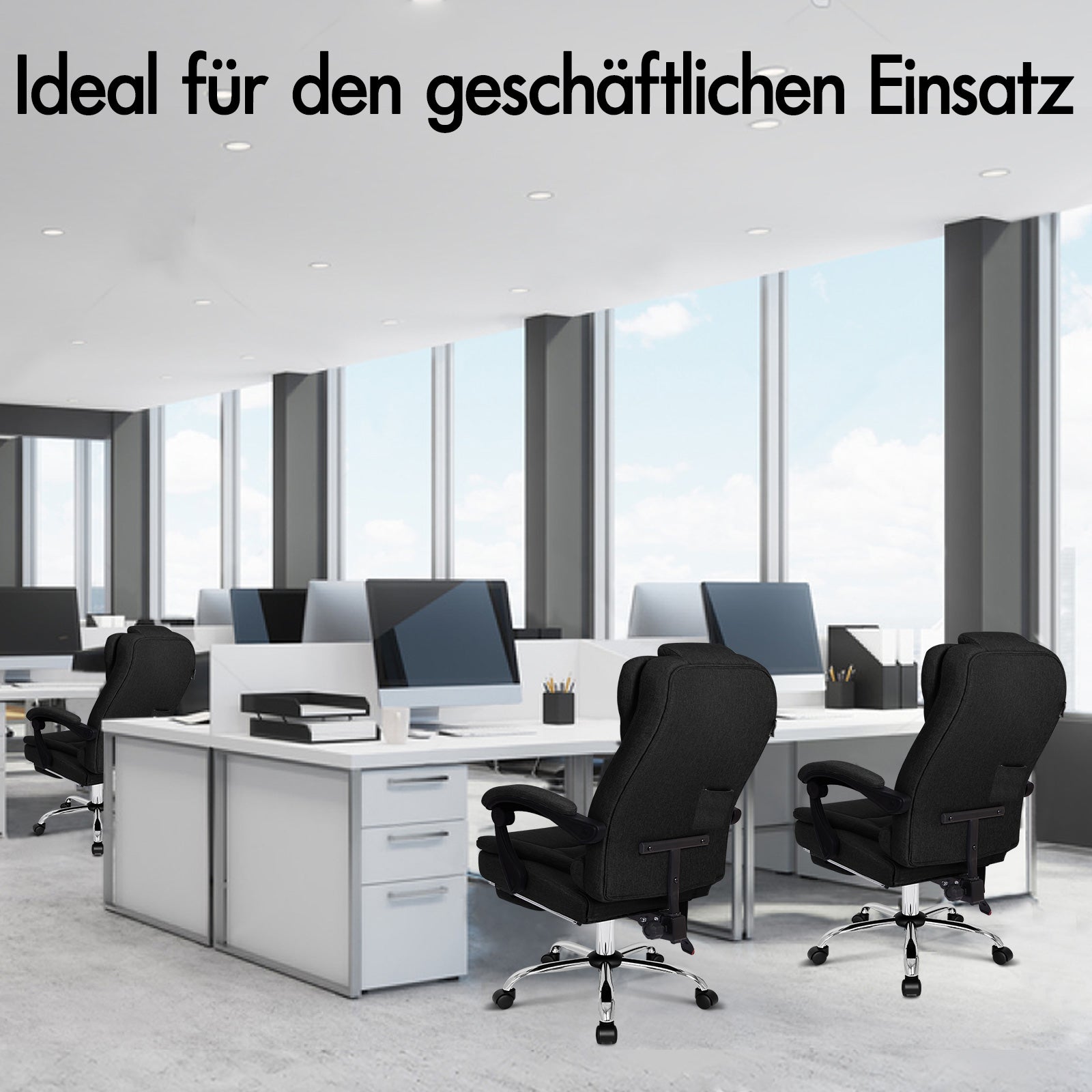 Especificaciones * Tela de lino de alta calidad aprobada por Intertek * Elevador de gas aprobado por SGS, sin miedo a explosiones * Volantes aprobados por TUV * Asiento de tres capas: Tela de lino transpirable + espuma elástica + tablero de madera resistente * Alta capacidad de carga: 180 kg * 2 años de garantía * Color: Negro