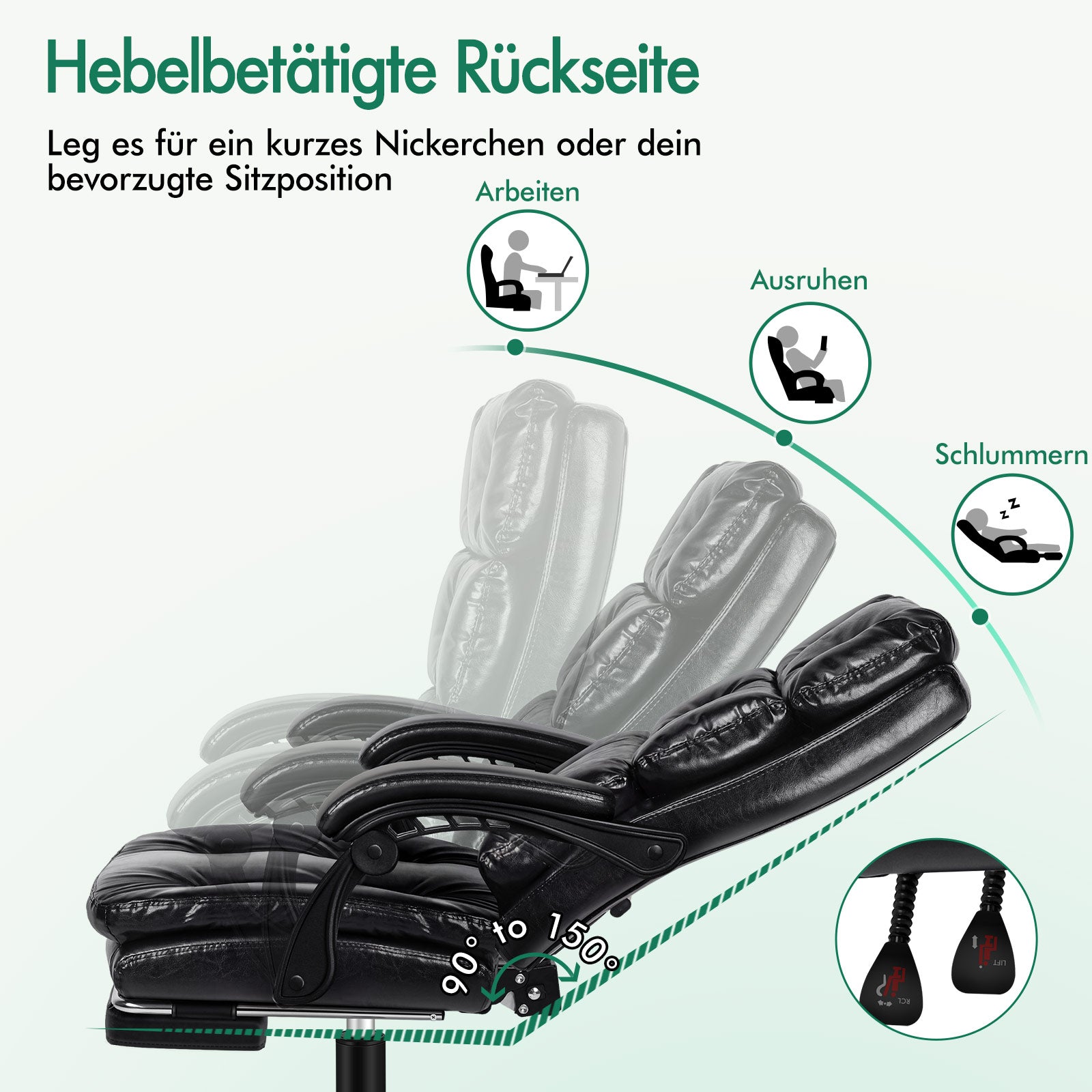 Especificaciones * Cuero PU de alta calidad aprobado por Intertek * Elevador de gas aprobado por SGS, sin miedo a explosiones * Ruedas aprobadas por TUV * Asiento de tres capas: cuero PU + espuma elástica + tabla de madera * No utilizamos espuma reciclada ni tablas de madera * Alta capacidad de peso: 180 kg * Garantía: 2 años * Color: negro