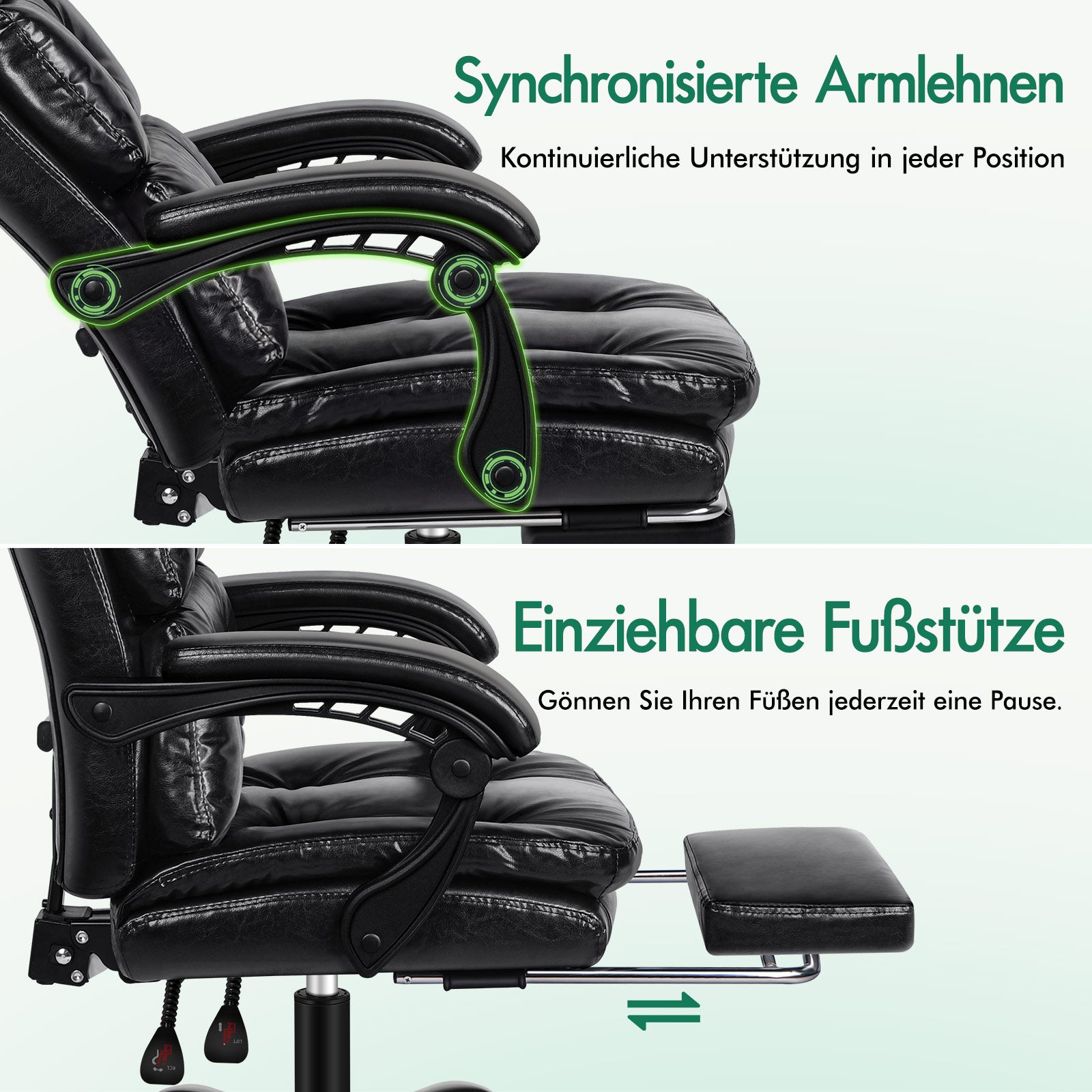 * Diseño clásico Chesterfield con botones cosidos, lujo y gracia atemporal * Respaldo alto de doble capa con tapizado de lujo * Diseño ergonómico para contornear completamente la forma de su cuerpo * Cojín extra grande para un mejor soporte lumbar * Respaldo ajustable hasta 150 grados * Se puede bloquear en una posición reclinada * Reposapiés acolchado extensible * Ruedas universales de primera calidad * Rotación suave de 360 grados * Tapicería de doble costura * Soporte lumbar y de espalda integrado * Apoyabrazos de plástico PP de lujo con acolchado, anchos y de apoyo * Espuma de alta resiliencia * Elimina la presión de la espalda y los hombros * Base de cromo con recubrimiento de polvo negro, clásica y menos propensa a ensuciarse * Ideal para oficinas en el hogar, salas de juntas y fines comerciales