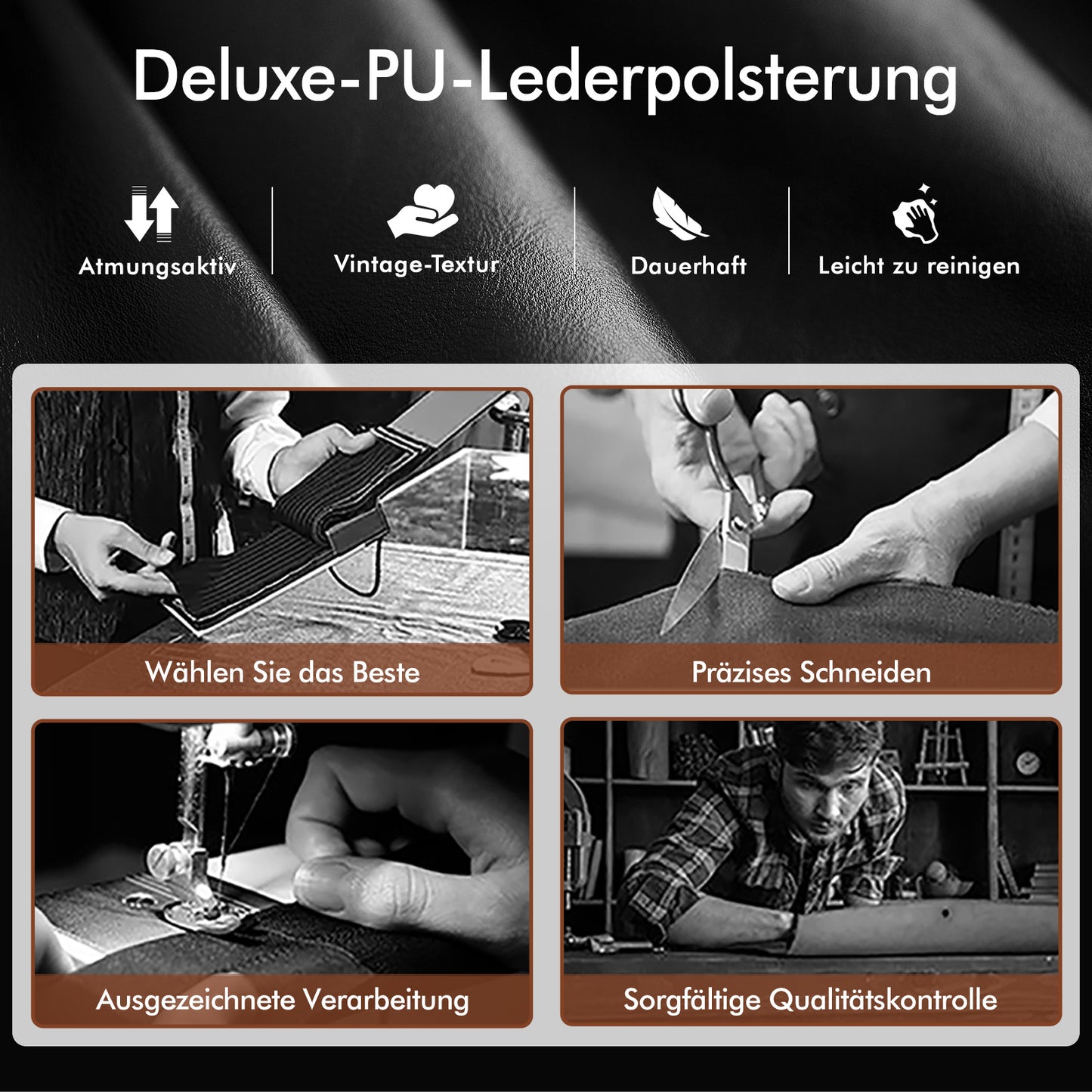 Er besticht nicht nur durch sein ikonisches Design und seine zeitlose Anziehungskraft, sondern ist auch gemütlich und praktisch. Sitz und Rückenlehne sind mit hochwertigem PU-Leder bezogen und mit hochelastischem Schaumstoff gepolstert – ein komfortabler Komfort. Dank des hochdichten Schaumstoffs bieten sie genau die richtige Unterstützung für ein angenehmes Sitzerlebnis. Dank der SGS-geprüften Gasdruckfeder müssen Sie sich keine Sorgen um Explosionen machen. Er ist um 360 Grad drehbar und höhenverstellbar, was Ihre Gespräche entspannt und entspannt.
