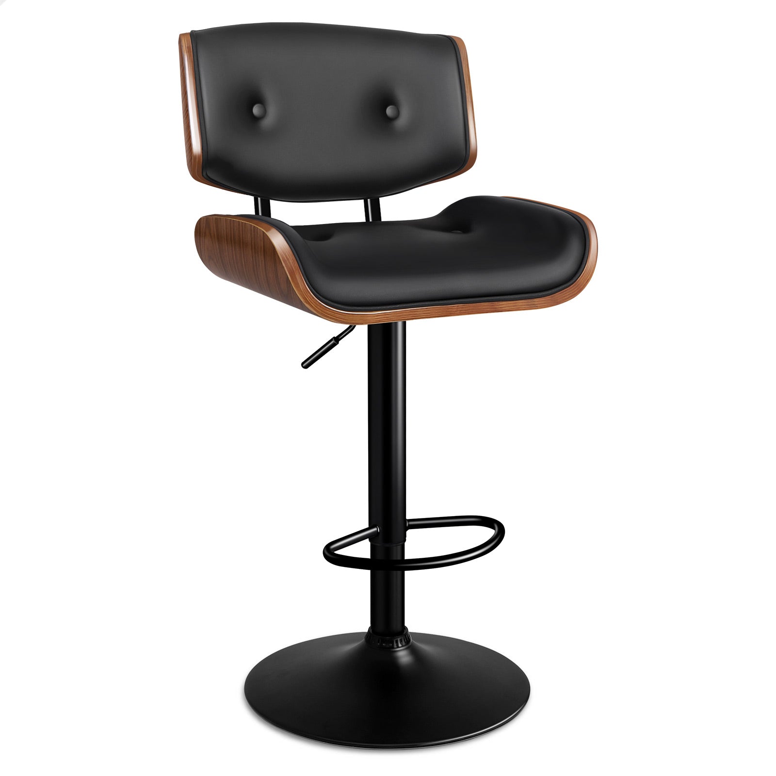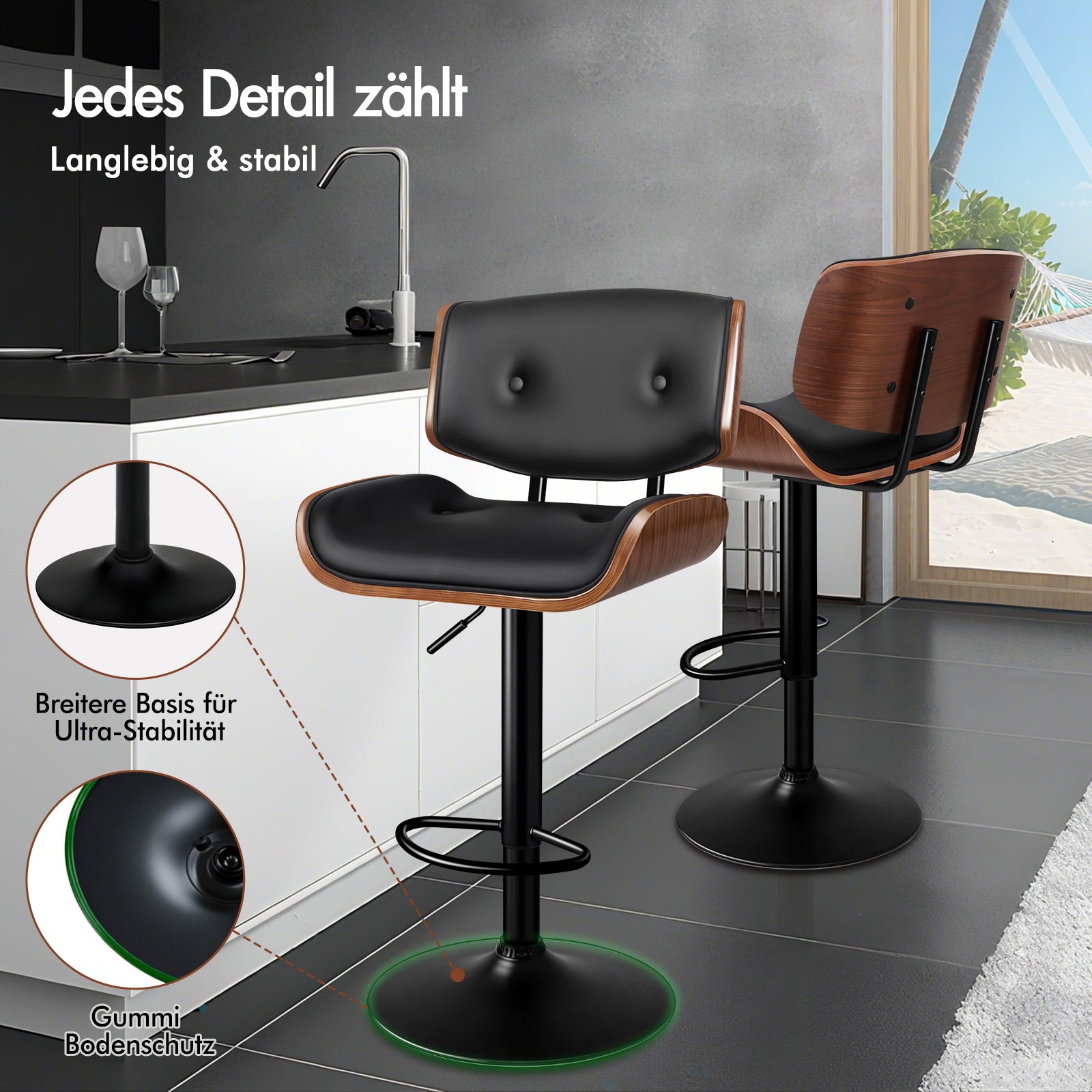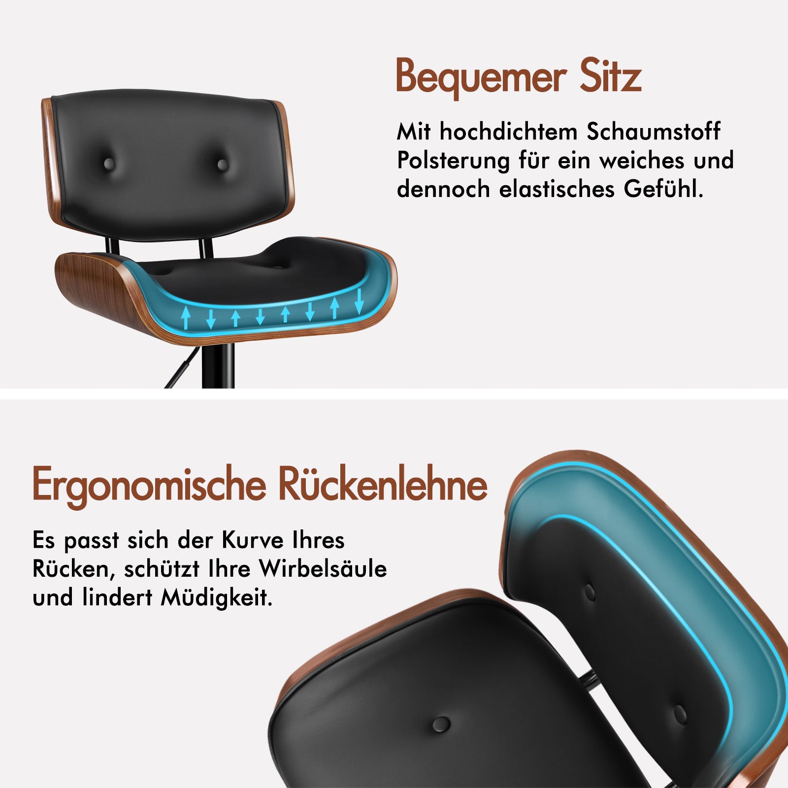 Spezifikationen * SGS-geprüfte Gasdruckfeder, keine Explosionsgefahr* Farbe: Holzsitz mit schwarzer Polsterung* Sitzmaterial: Massivsperrholz und PU-Leder* Basismaterial: Stahl* Verarbeitung: Zarte Holzmaserung (Sitz) und schwarz pulverbeschichtetes Chrom (Basis)* Artikelhöhe: 94,5–115,5 cm* Artikelbreite: 45 cm* Artikellänge: 53 cm* Abmessungen: Detaillierte Größenangaben finden Sie auf dem Maßfoto* High weight capacity: 150kg