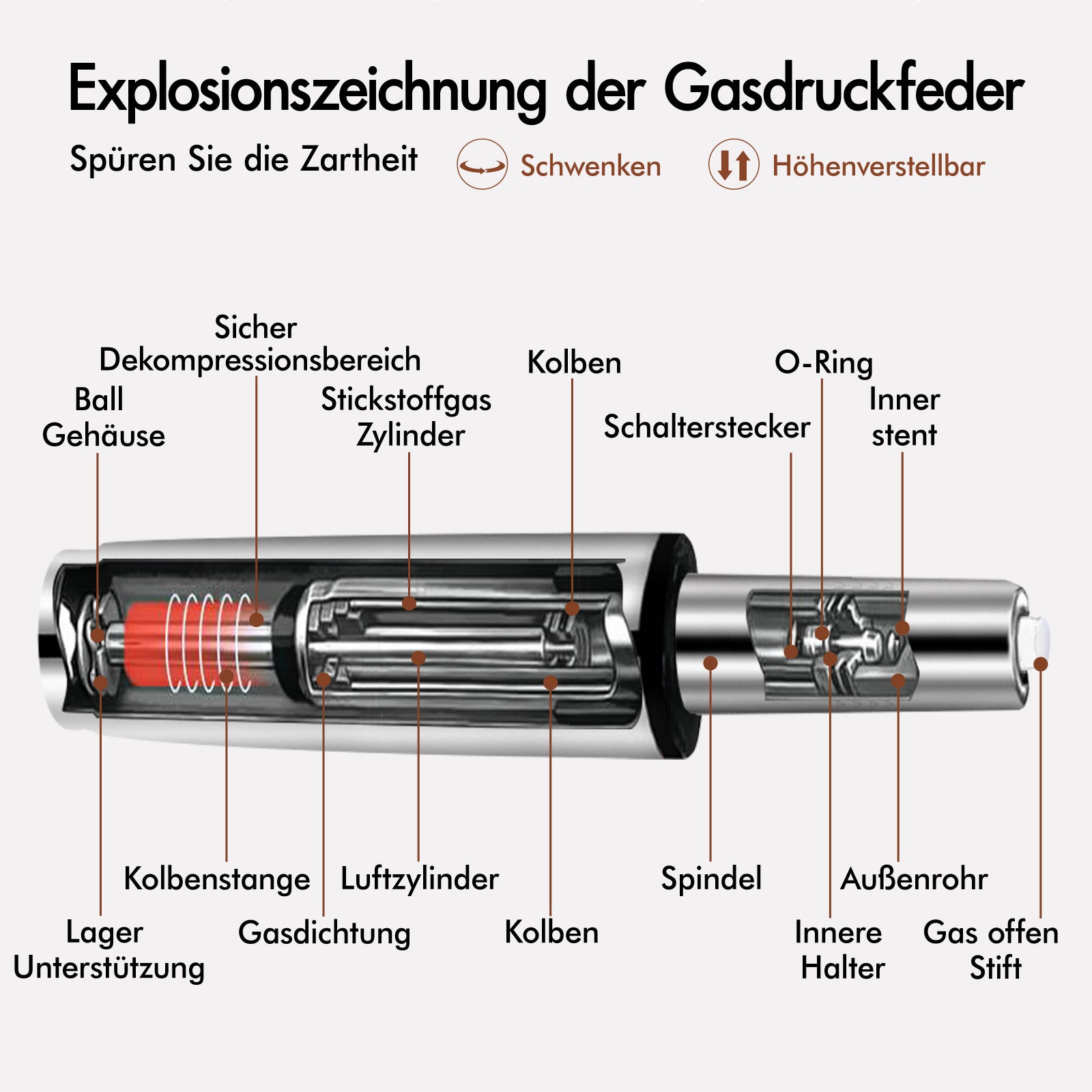 Er besticht nicht nur durch sein ikonisches Design und seine zeitlose Anziehungskraft, sondern ist auch gemütlich und praktisch. Sitz und Rückenlehne sind mit hochwertigem PU-Leder bezogen und mit hochelastischem Schaumstoff gepolstert – ein komfortabler Komfort. Dank des hochdichten Schaumstoffs bieten sie genau die richtige Unterstützung für ein angenehmes Sitzerlebnis. Dank der SGS-geprüften Gasdruckfeder müssen Sie sich keine Sorgen um Explosionen machen. Er ist um 360 Grad drehbar und höhenverstellbar, was Ihre Gespräche entspannt und entspannt macht.