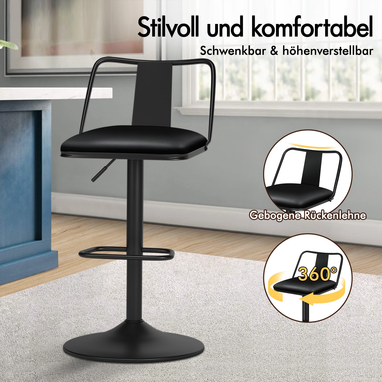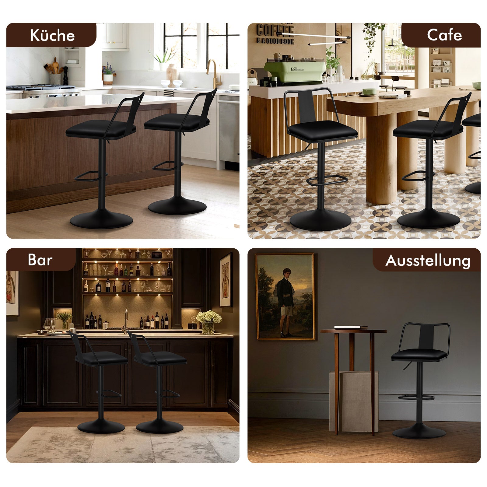 ALFORDSON 2x Barhocker Gaslift Leder Barstühle Küche Drehbar Gloria SCHWARZ