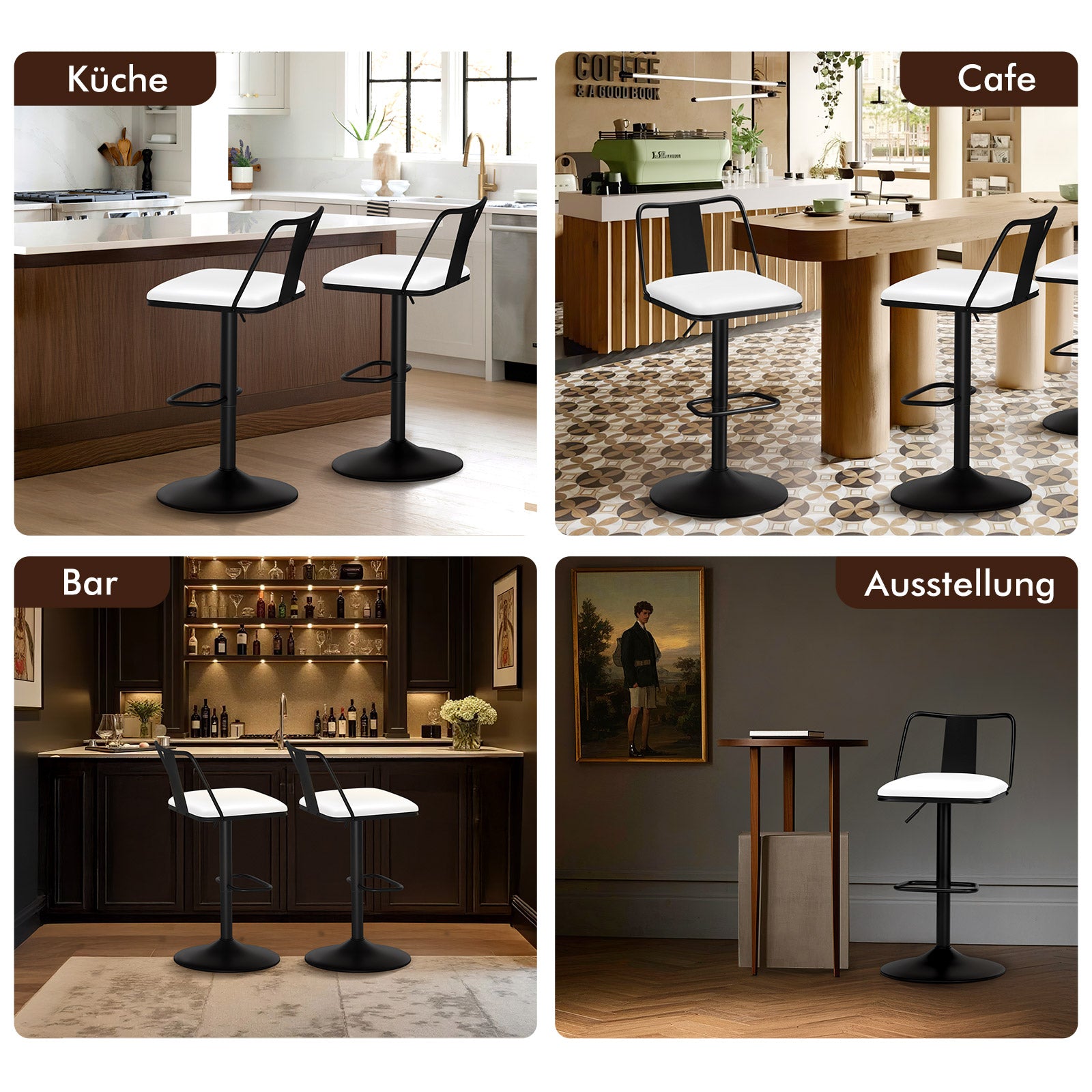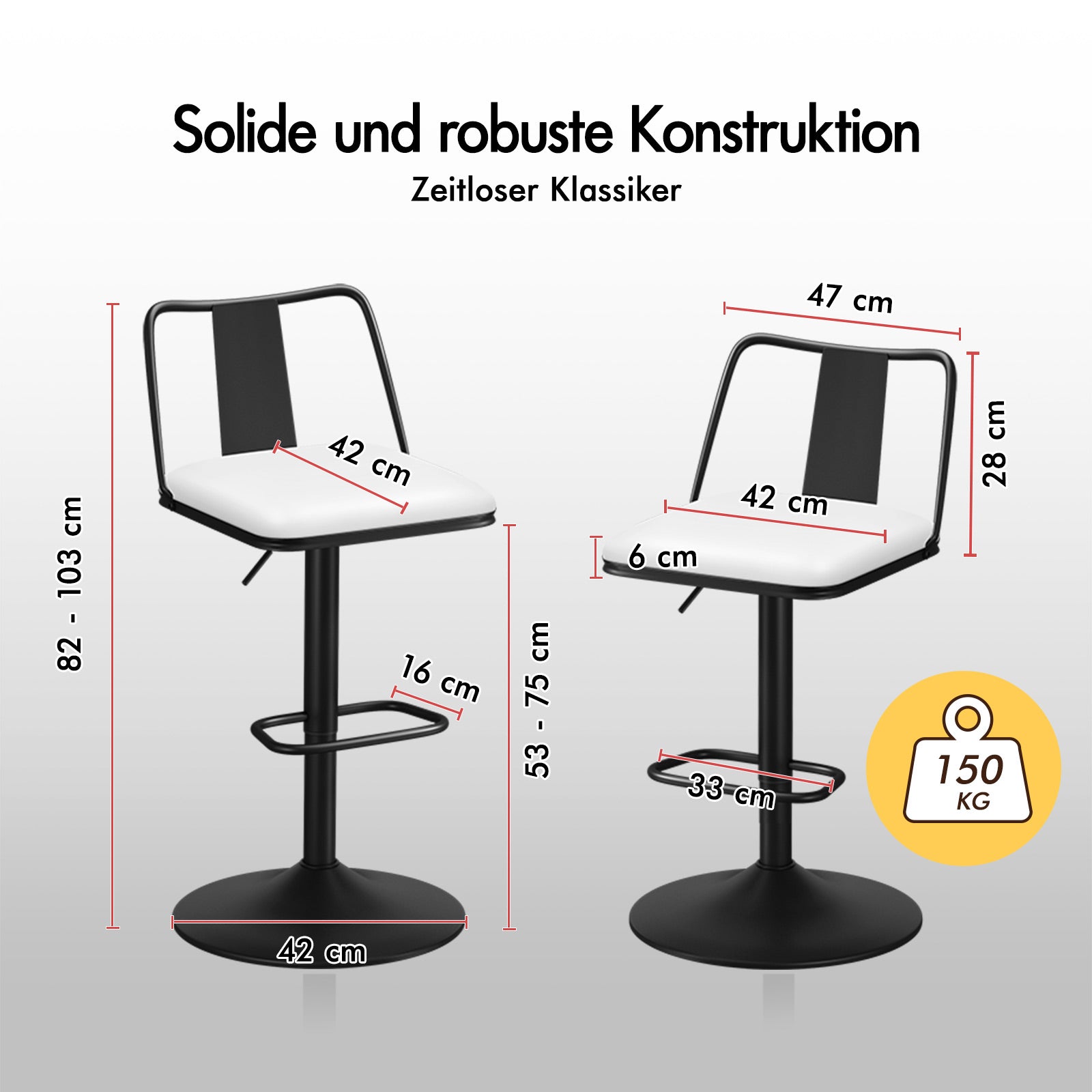 Spezifikationen * SGS-geprüfte Gasdruckfeder, keine Explosionsgefahr* Farbe: Schwarzer Rahmen mit schwarzer Polsterung, schwarzer Rahmen mit stoffgrauer Polsterung, schwarzer Rahmen mit weißer Polsterung* Sitzmaterial: PU-Leder//Leinenstoff* Basismaterial: Stahl* Oberfläche: Schwarz pulverbeschichtetes Chrom* Artikelhöhe: 82–103 cm* Artikelbreite: 42 cm* Artikellänge: 47 cm* Abmessungen: Detaillierte Größen siehe Maßfoto* Hohe Gewichtskapazität: 150 kg