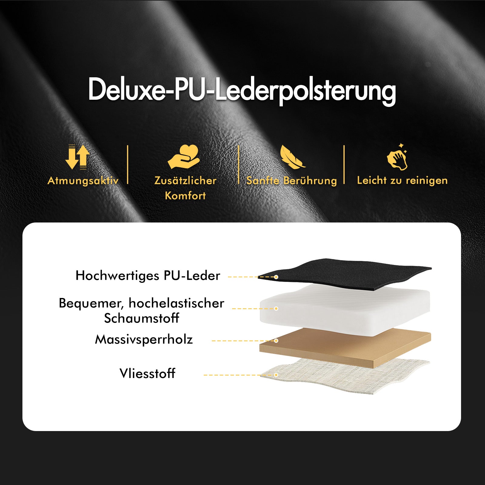 Er besticht nicht nur durch sein ikonisches Design und seine zeitlose Anziehungskraft, sondern ist auch gemütlich und praktisch. Sitz und Rückenlehne sind mit hochwertigem PU-Leder/Leinen bezogen und mit hochelastischem Schaumstoff gepolstert – ein komfortabler Komfort. Dank des hochdichten Schaumstoffs bieten sie genau die richtige Unterstützung für ein angenehmes Sitzerlebnis. Dank der SGS-geprüften Gasdruckfeder müssen Sie sich keine Sorgen um Explosionen machen. Er ist um 360 Grad drehbar und höhenverstellbar, was Ihre Gespräche entspannt und entspannt.