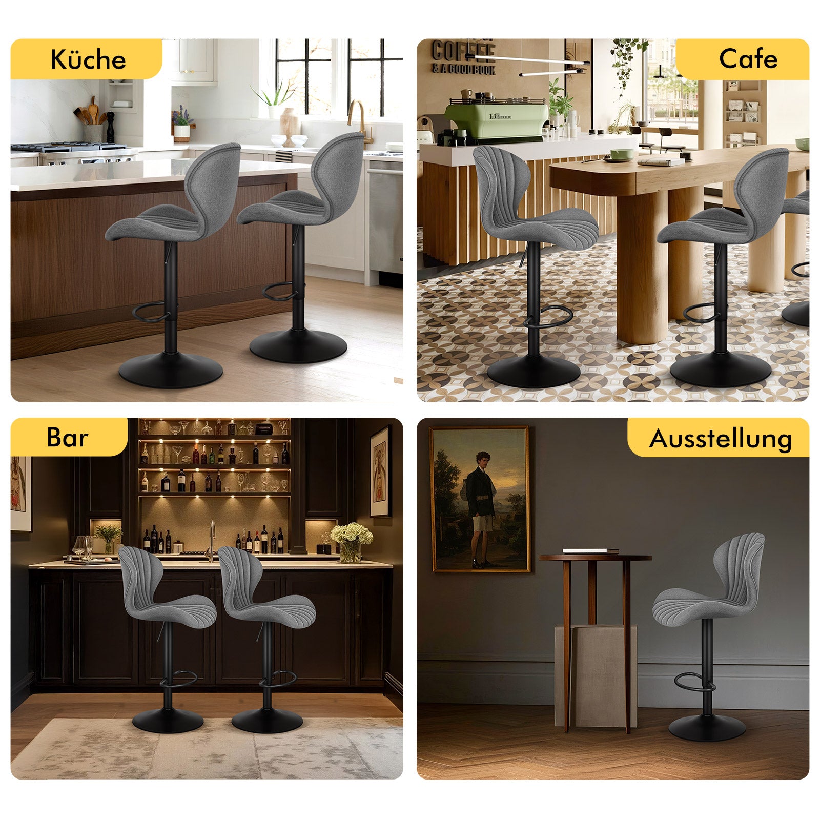 ALFORDSON 2x Barhocker Gaslift Stoff Barstühle Küche Drehbar Stella Grau