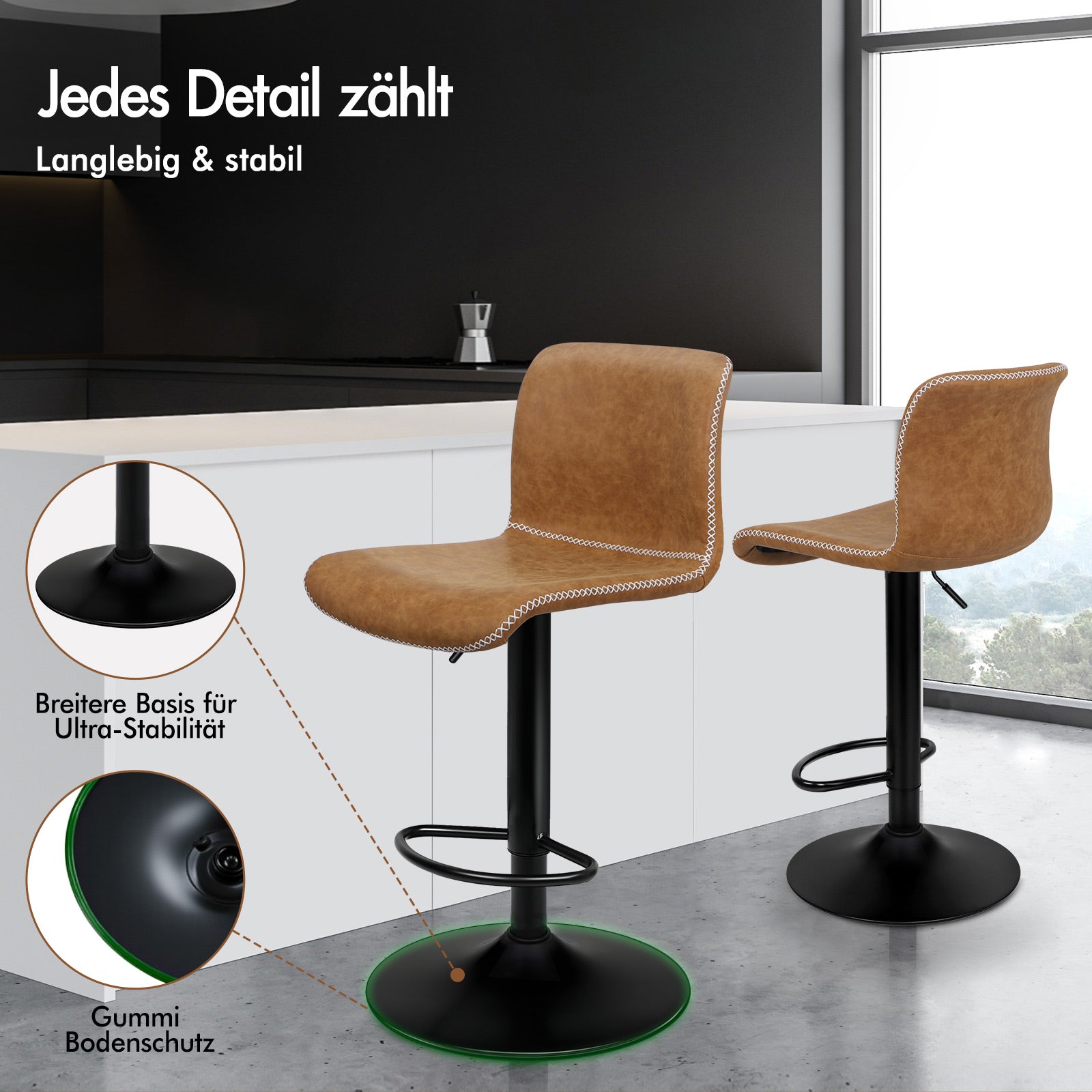 ALFORDSON 2x Barhocker Remy Küchenstuhl Gasdruckfeder Drehstuhl Vintage Leder, Braun