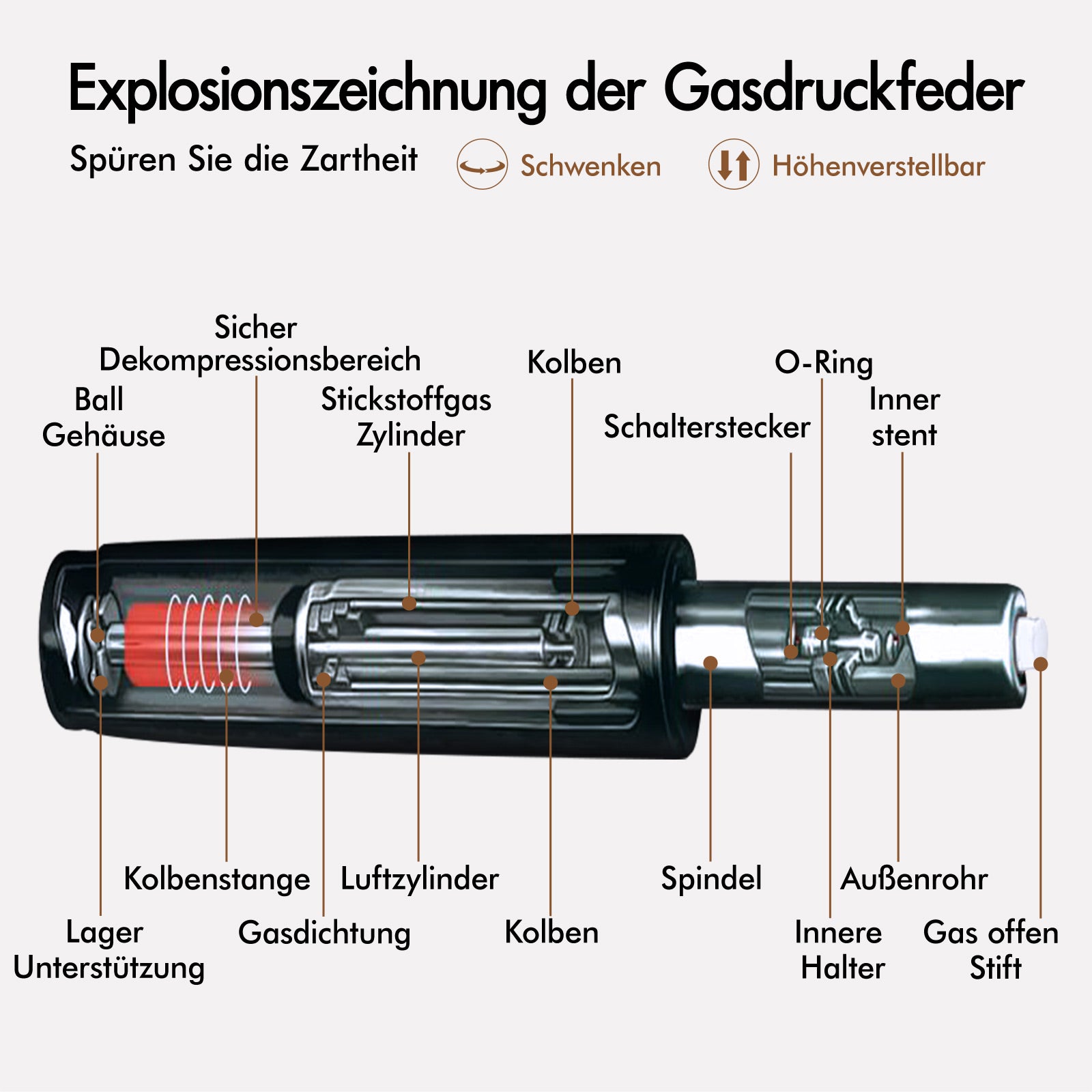 Spezifikationen * SGS-geprüfte Gasdruckfeder, keine Explosionsgefahr* Farbe: Braun* Sitzmaterial: PU-Leder* Gestellmaterial: Stahl* Oberfläche: Schwarz pulverbeschichtetes Chrom* Sitzhöhe: 59 – 81 cm* Sitzbreite: 40 cm* Sitztiefe: 38 cm* Abmessungen: Detaillierte Größen siehe Maßfoto* Belastbarkeit: 150 kg