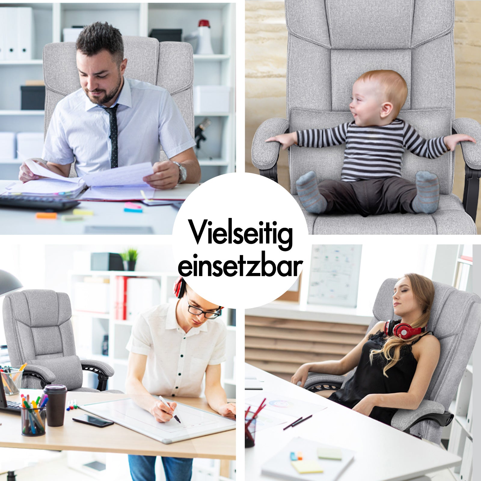 Der Alfordson Computerstuhl ist ein zeitloses Modell. Er verfügt über eine doppellagige Rückenlehne mit luxuriöser Schaumstoffpolsterung, die Ihnen jedes Mal ein angenehmes Sitzgefühl bietet. Hergestellt aus atmungsaktivem und strapazierfähigem PU-Leder/Leinengewebe, wertet dieser moderne Relaxsessel die Atmosphäre des Raumes auf. Ein Spitzenprodukt in Qualität und Design – Ihre Lösung für echten Komfort.Die ergonomische Rückenstütze und das extra große Lendenkissen passen sich Ihrer Körperform optimal an und ermöglichen Ihnen so, auch bei längerem Arbeiten oder Spielen optimal entspannt zu bleiben. Das Kissen ist mit einem elastischen Gurt ausgestattet, verstellbar und kann in jeder Position am Rücken fixiert werden.