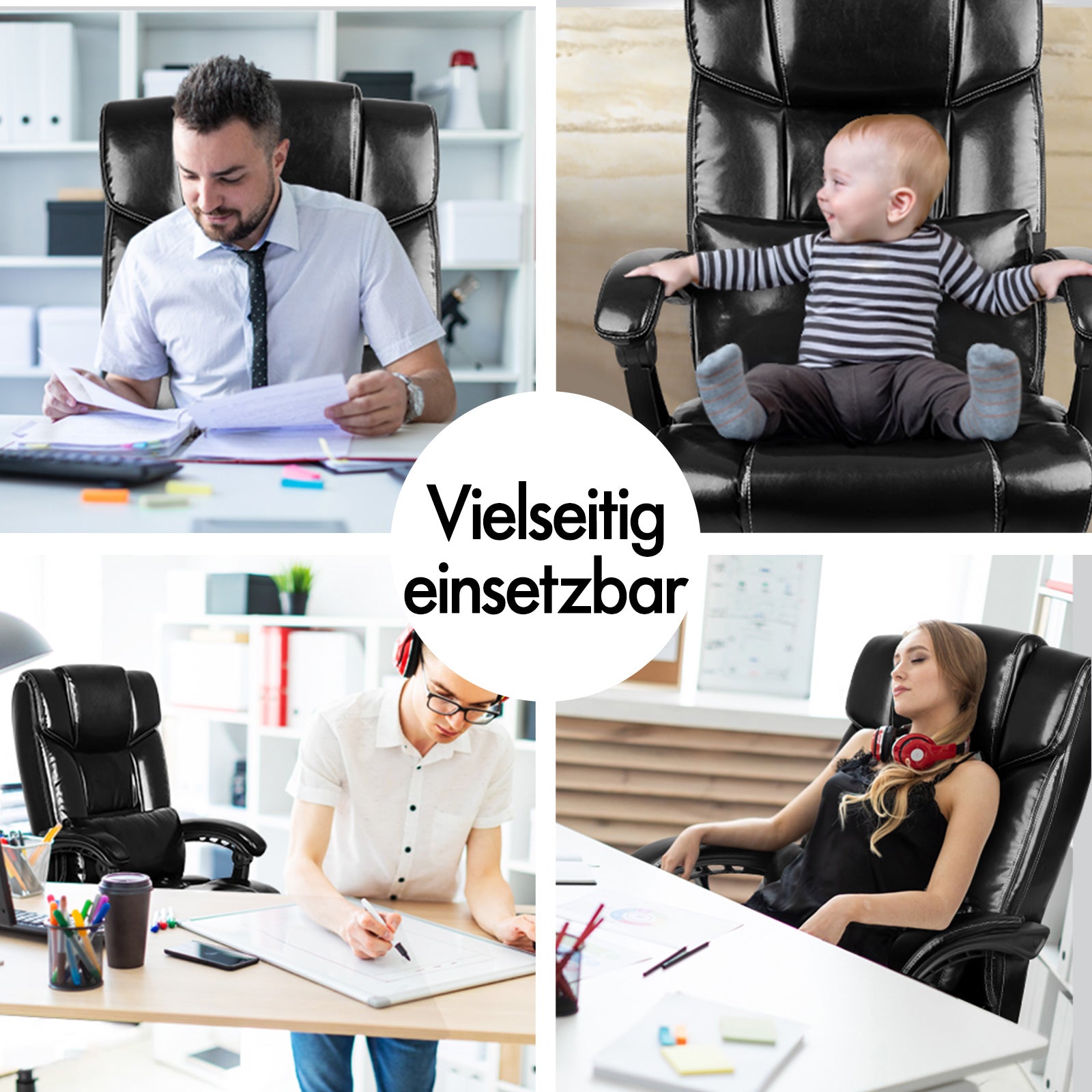 ALFORDSON Bürostuhl Exekutive Computer Spielen PU-Ledersitz Recliner Schwarz