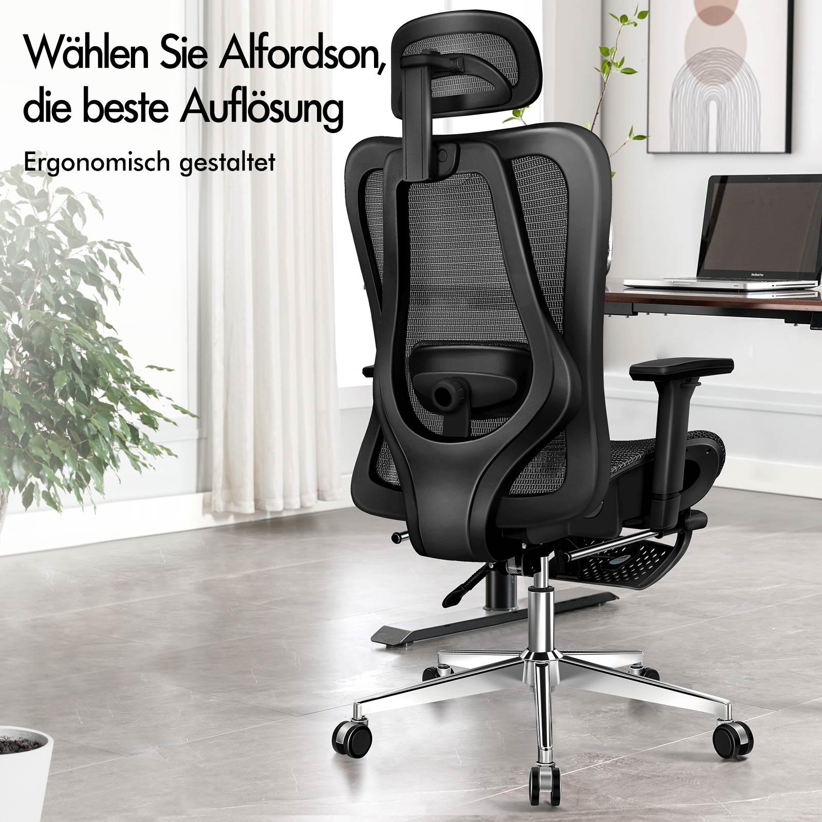Der Alfordson® Mesh Chair Pro wurde entwickelt, um Ihren Körper auf natürliche Weise im Gleichgewicht zu halten und gut zu stützen. Er ist als ultimativer Chefsessel konzipiert – absolut ergonomisch, intuitiv zu bedienen und komfortabel.