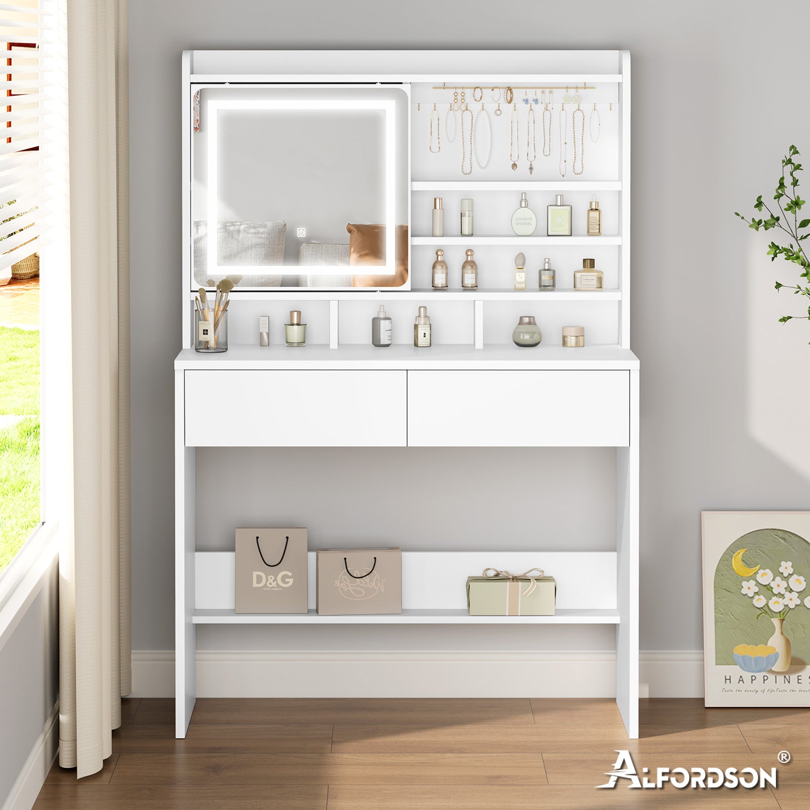 ALFORDSON Frisiertisch-Hocker-Set Schminktisch Spiegel Schrank Schminktisch Weiß