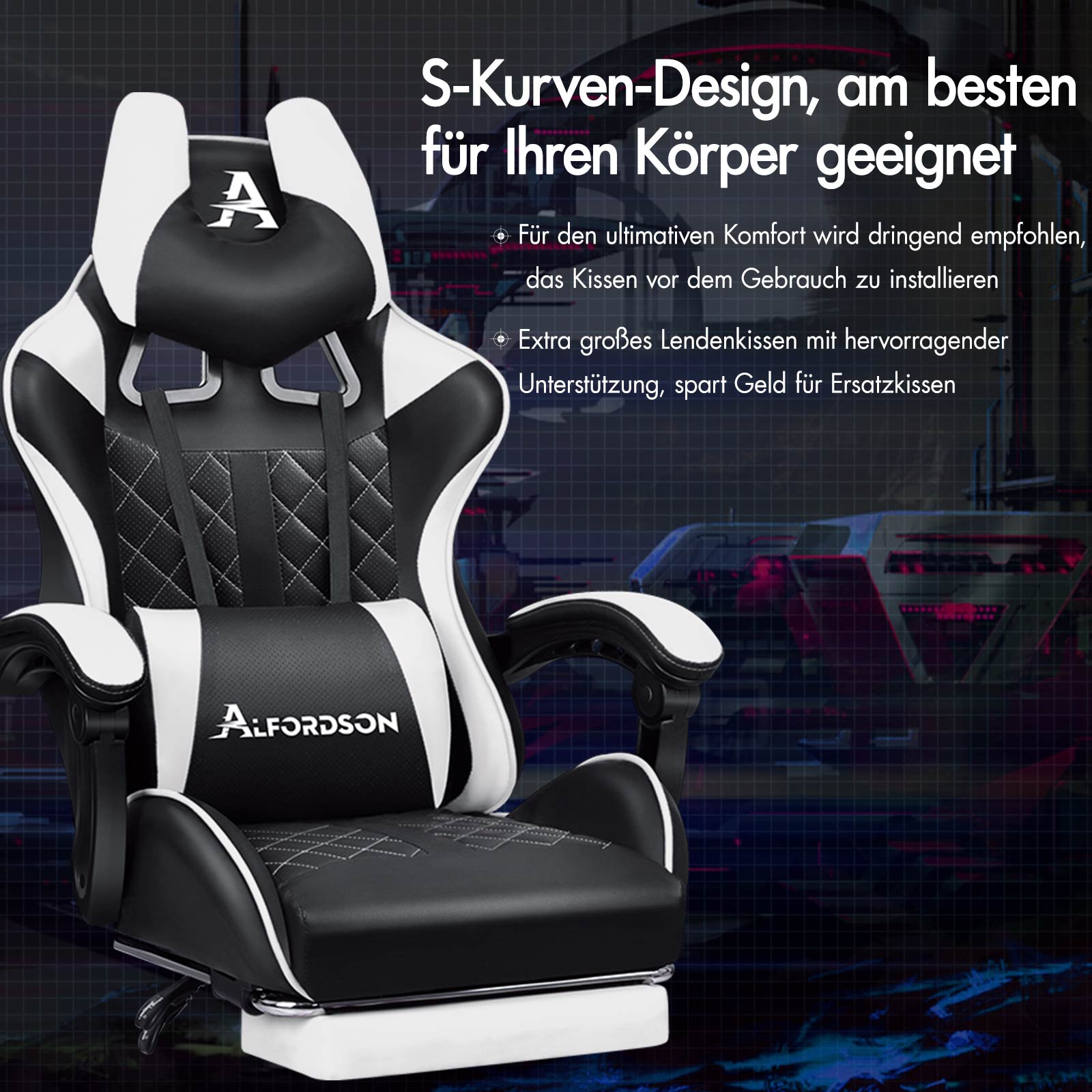 ALFORDSON Gaming Stuhl Office Racer Großes Lendenkissen Fußstütze Sitz Leder Weiß
