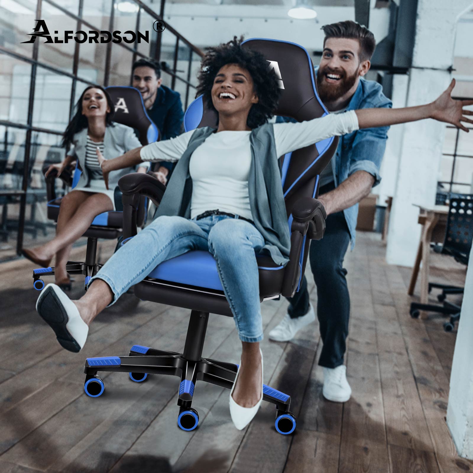 ALFORDSON Gaming-Stuhl Bürostuhl Dicke Polsterung Fußstütze Exekutive Blau