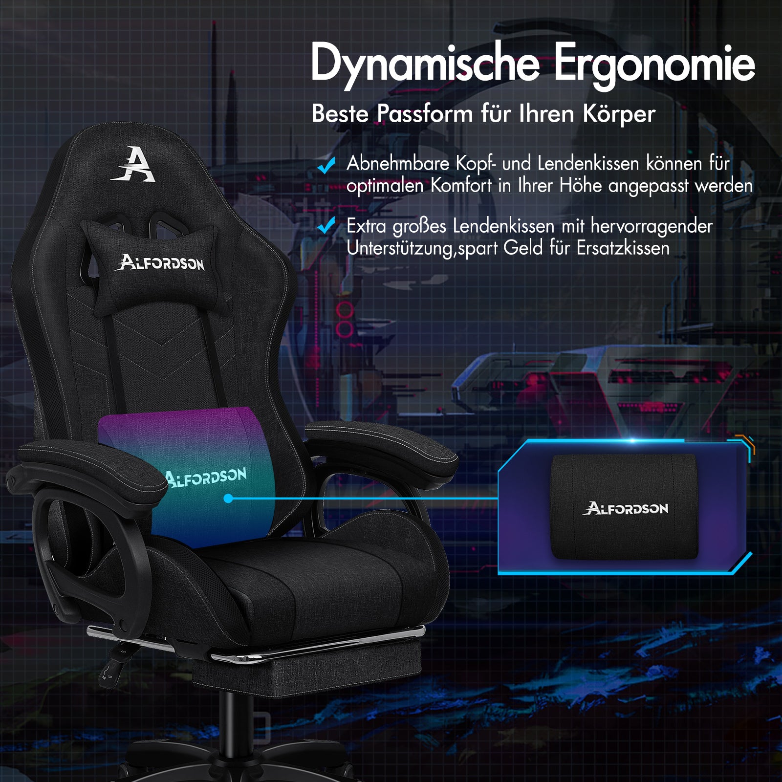 ALFORDSON Gaming Stuhl Büro 12 RGB LED Massage Computersitz Stoff Schwarz