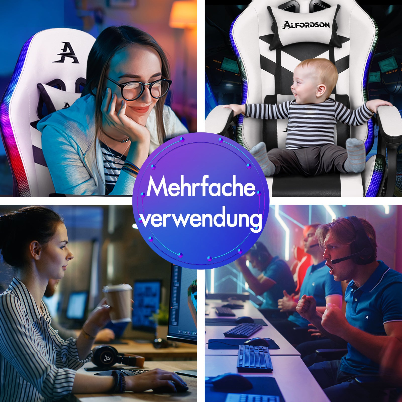 ALFORDSON Gaming Stuhl mit 8-Punkt Massage 12 Farben RGB LED-Licht Weiß & Schwarz