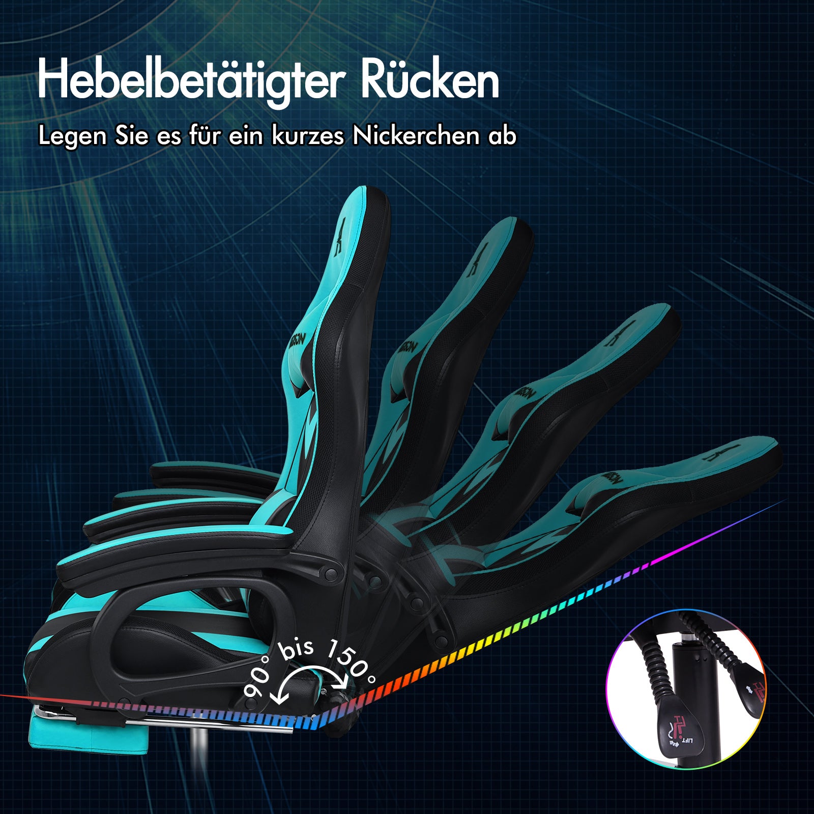 ALFORDSON Gaming Stuhl mit 8-Punkt Massage 12 Farben RGB LED-Licht Cyan Schwarz