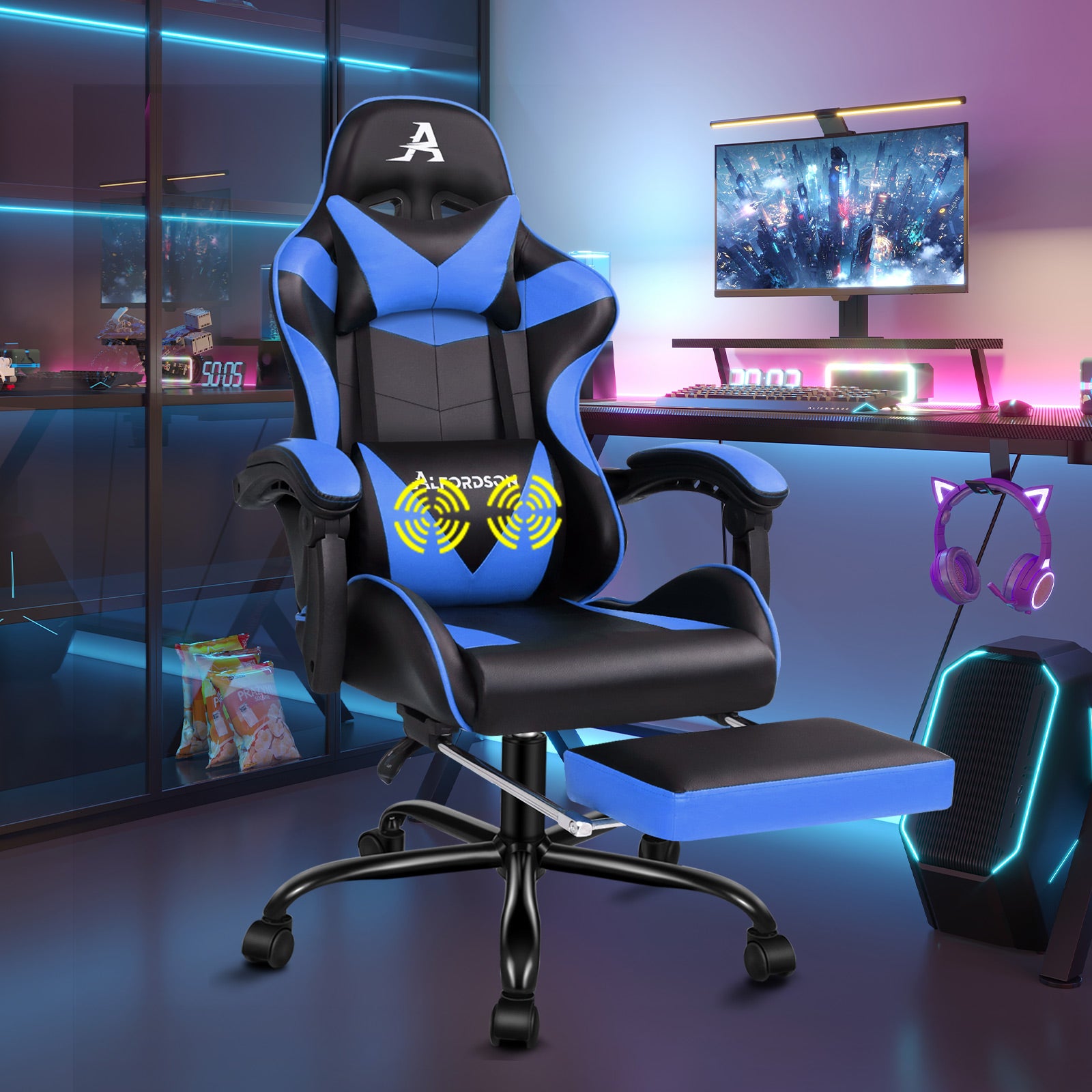 ALFORDSON Gaming Stuhl Bürostuhl Racing Stuhl Fußstütze Sitz PU Leder Blau