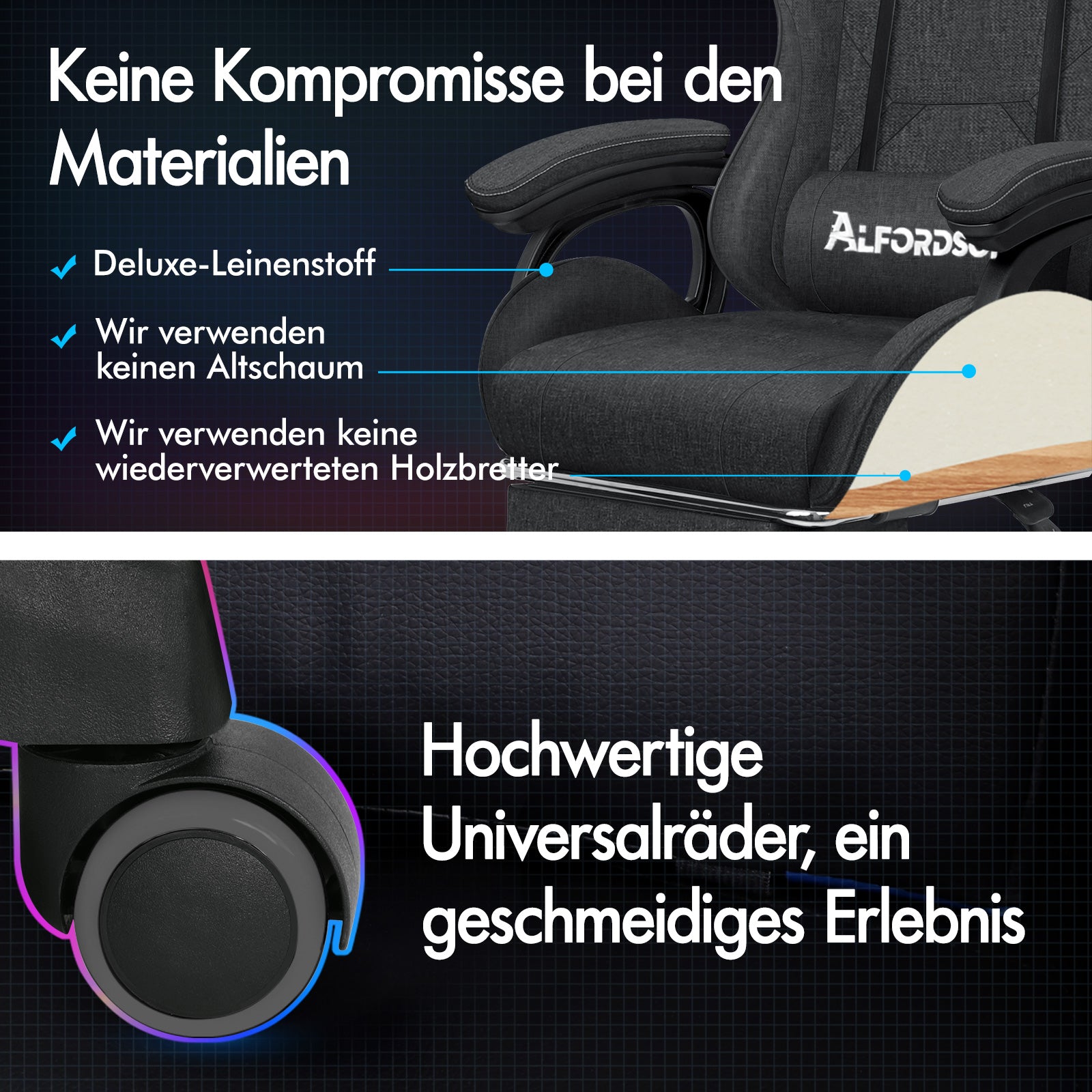 ALFORDSON Gaming-Stuhl Büro Massage Computer Stoff Rennsitz Fußstütze Grau