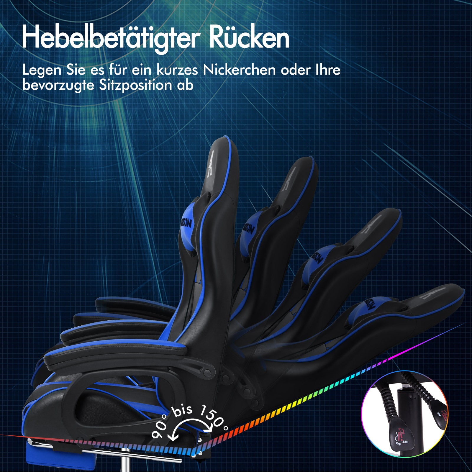 ALFORDSON Gaming Stuhl mit 2-Punkt Massage Bürostuhl mit Fußstütze Blau & Schwarz