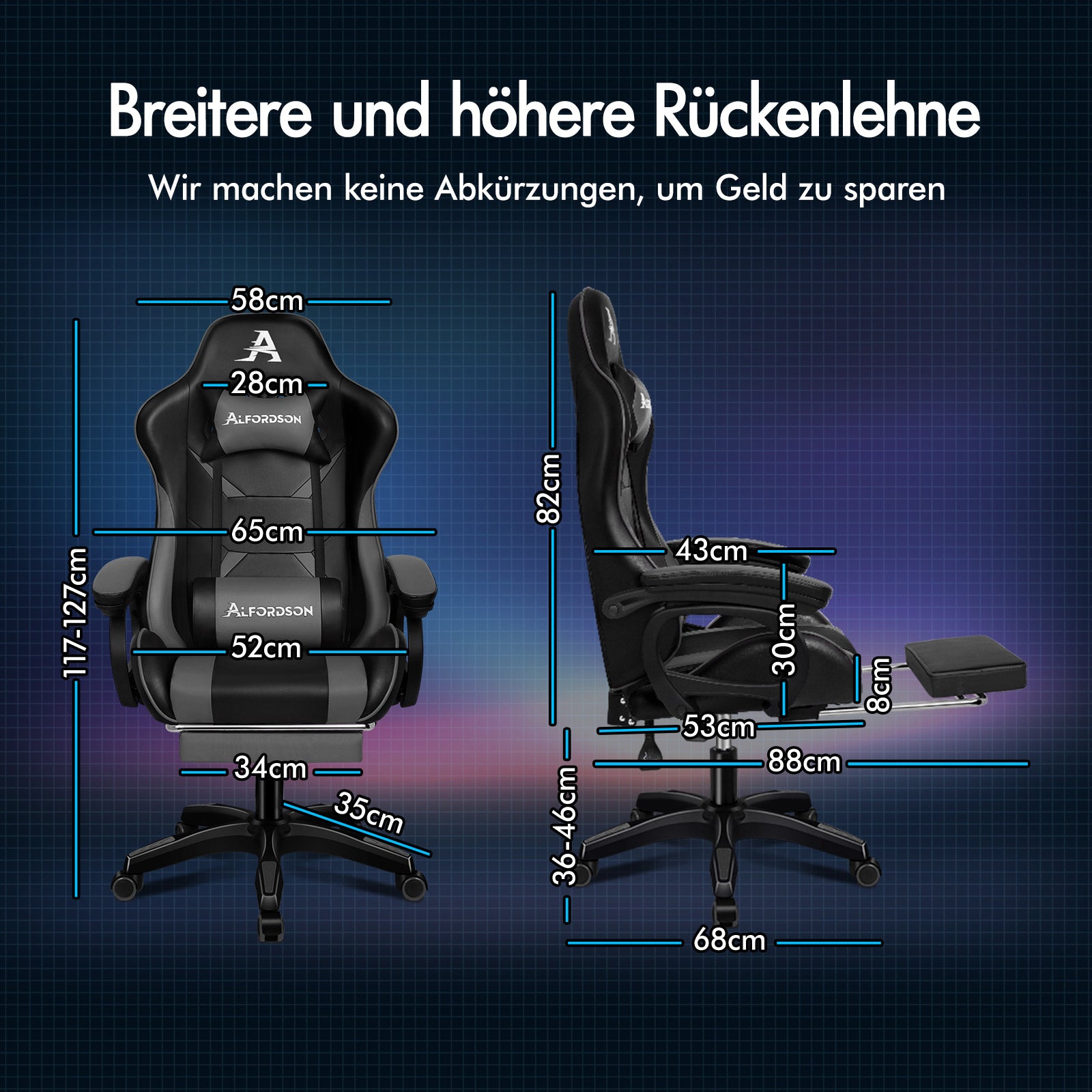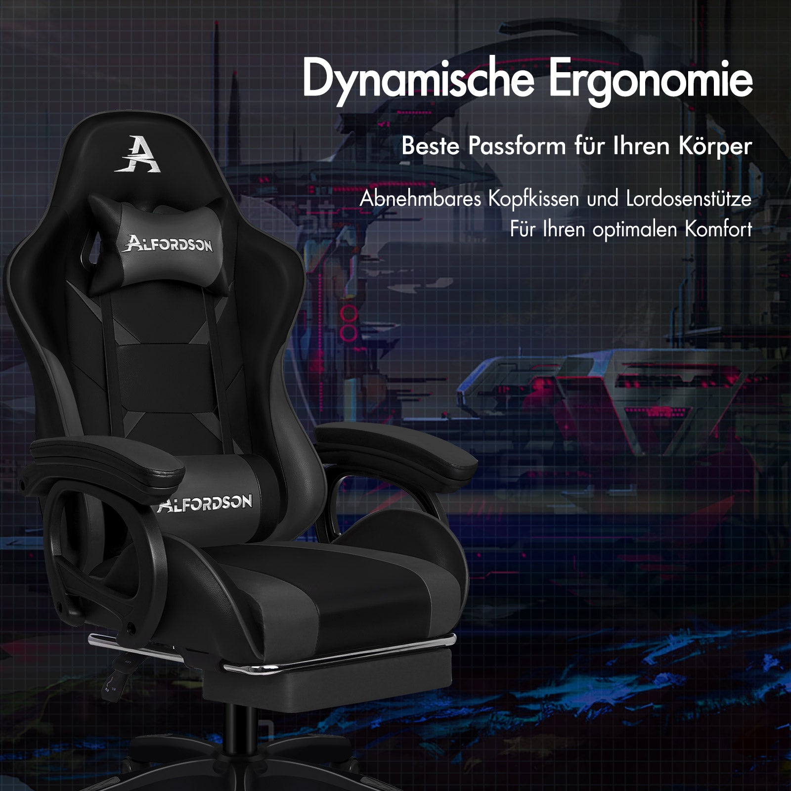 ALFORDSON Gaming Stuhl mit 2-Punkt Massage Bürostuhl mit Fußstütze Grau & Schwarz