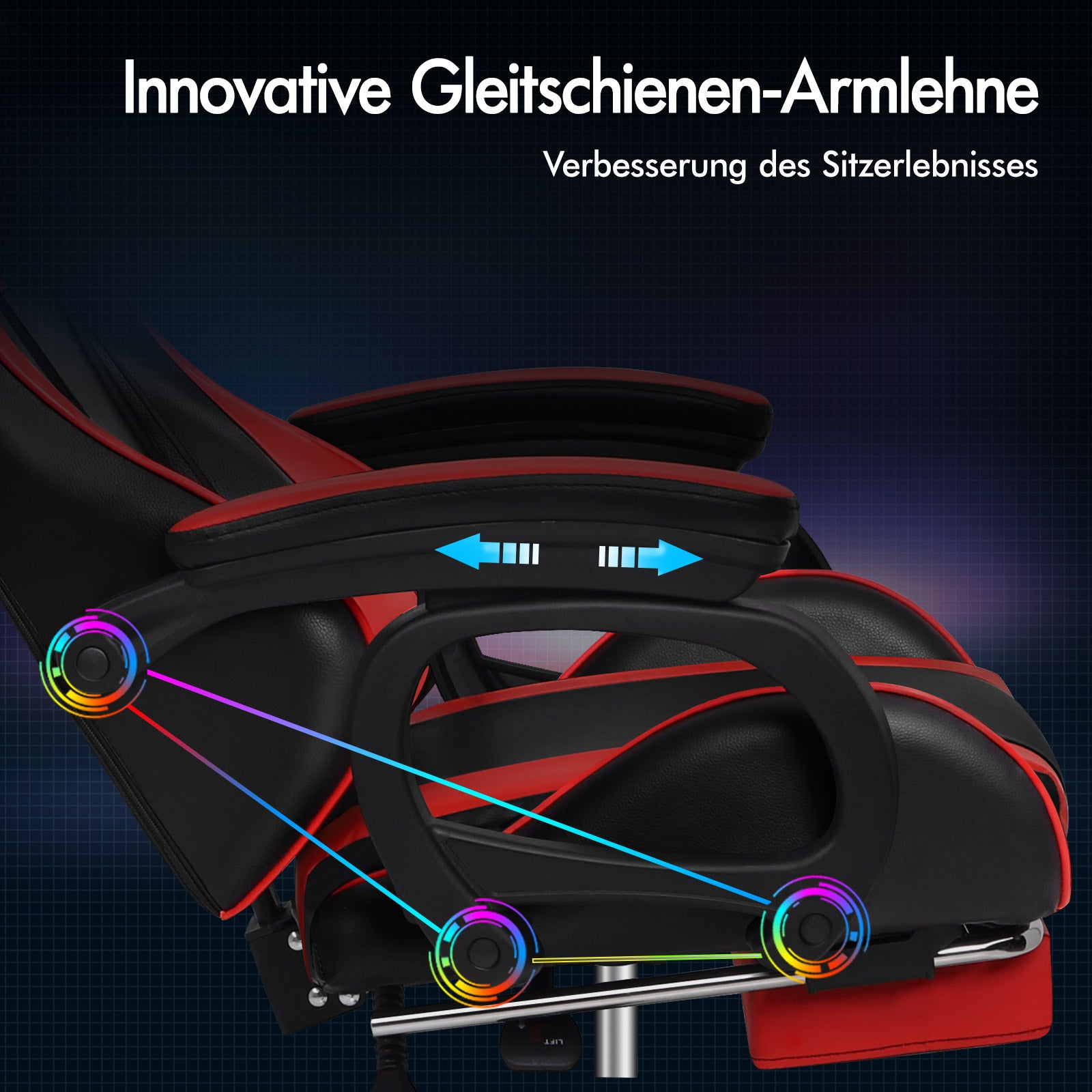 ALFORDSON Gaming Stuhl mit 2-Punkt Massage Bürostuhl mit Fußstütze Rot & Schwarz