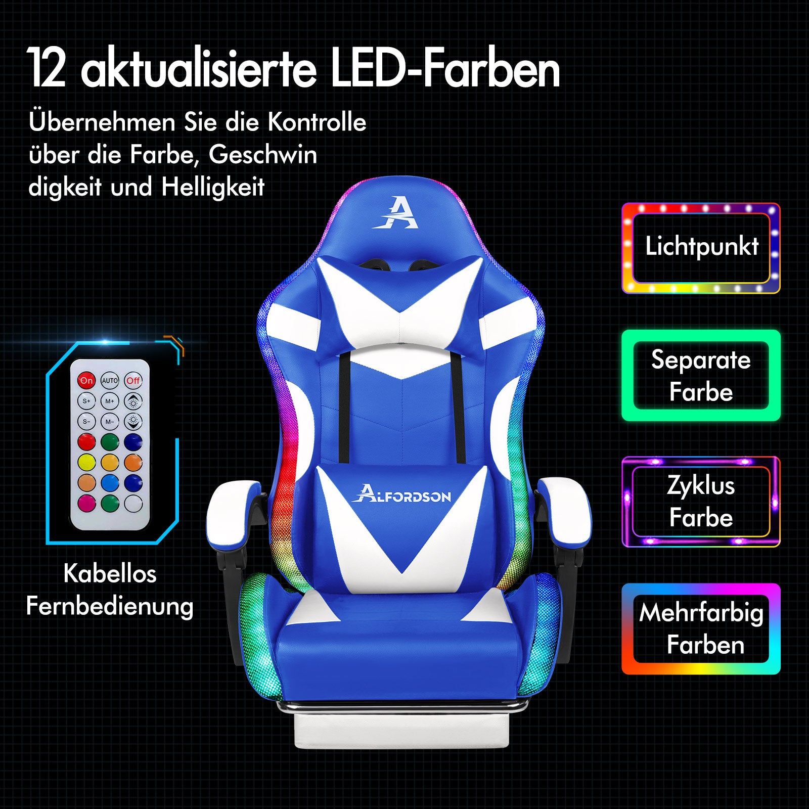 ALFORDSON Gaming Stuhl Büro Massage 12 RGB LED Computer Sitz PU Leder Weiß & Blau