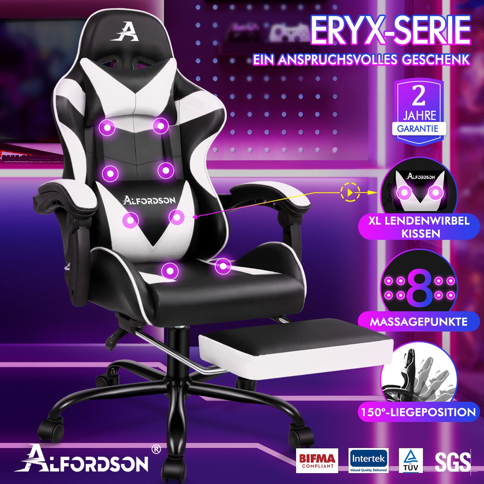 Der Alfordson® Gaming-Stuhl in der Massage-Kollektion wurde speziell für ambitionierte Gamer und smarte Führungskräfte entwickelt, die das Adrenalin eines Gaming-Stuhls lieben. Er ist das Nonplusultra für Macher wie Sie.
