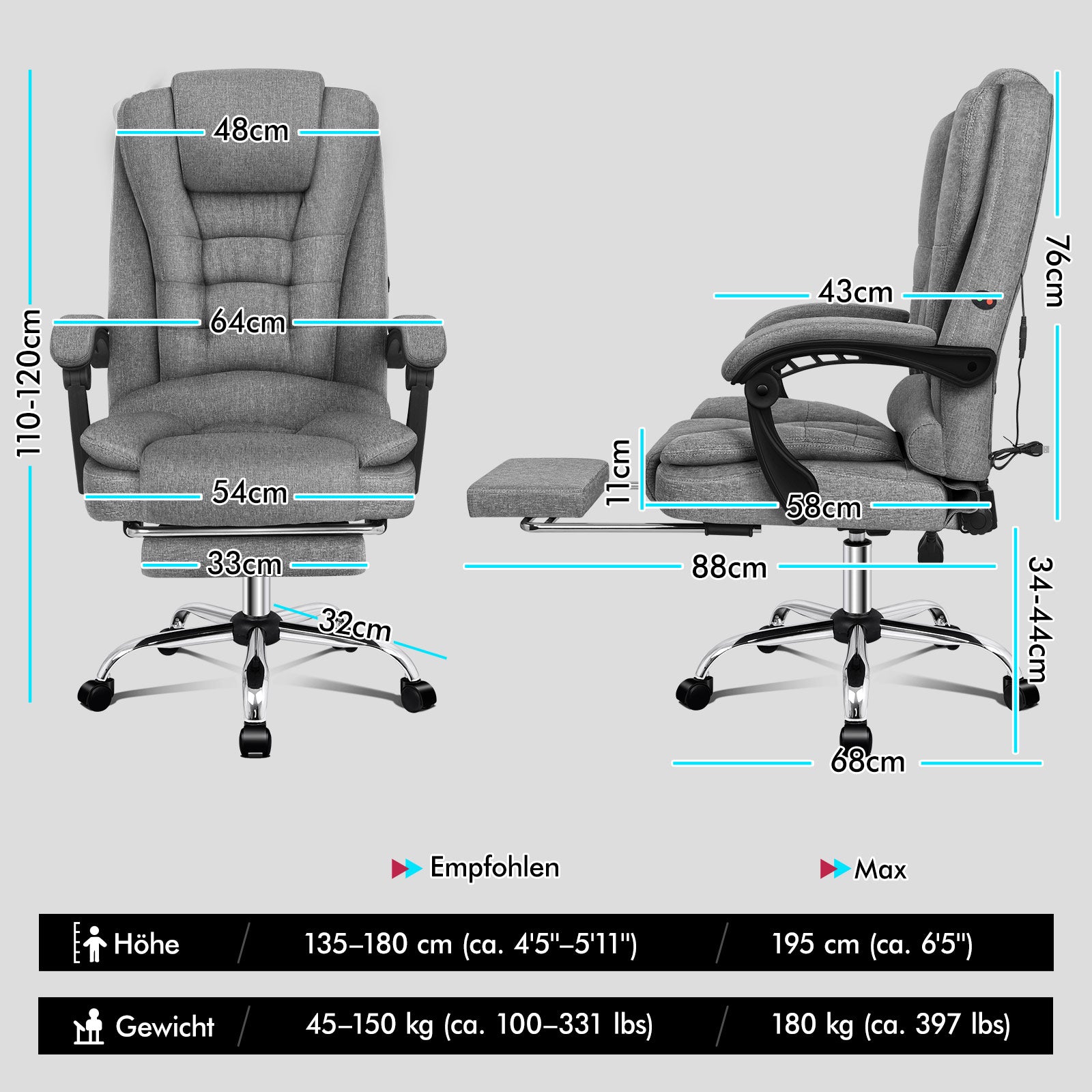 ALFORDSON® Massage-Bürostuhl mit Einziehbarer Fußstütze