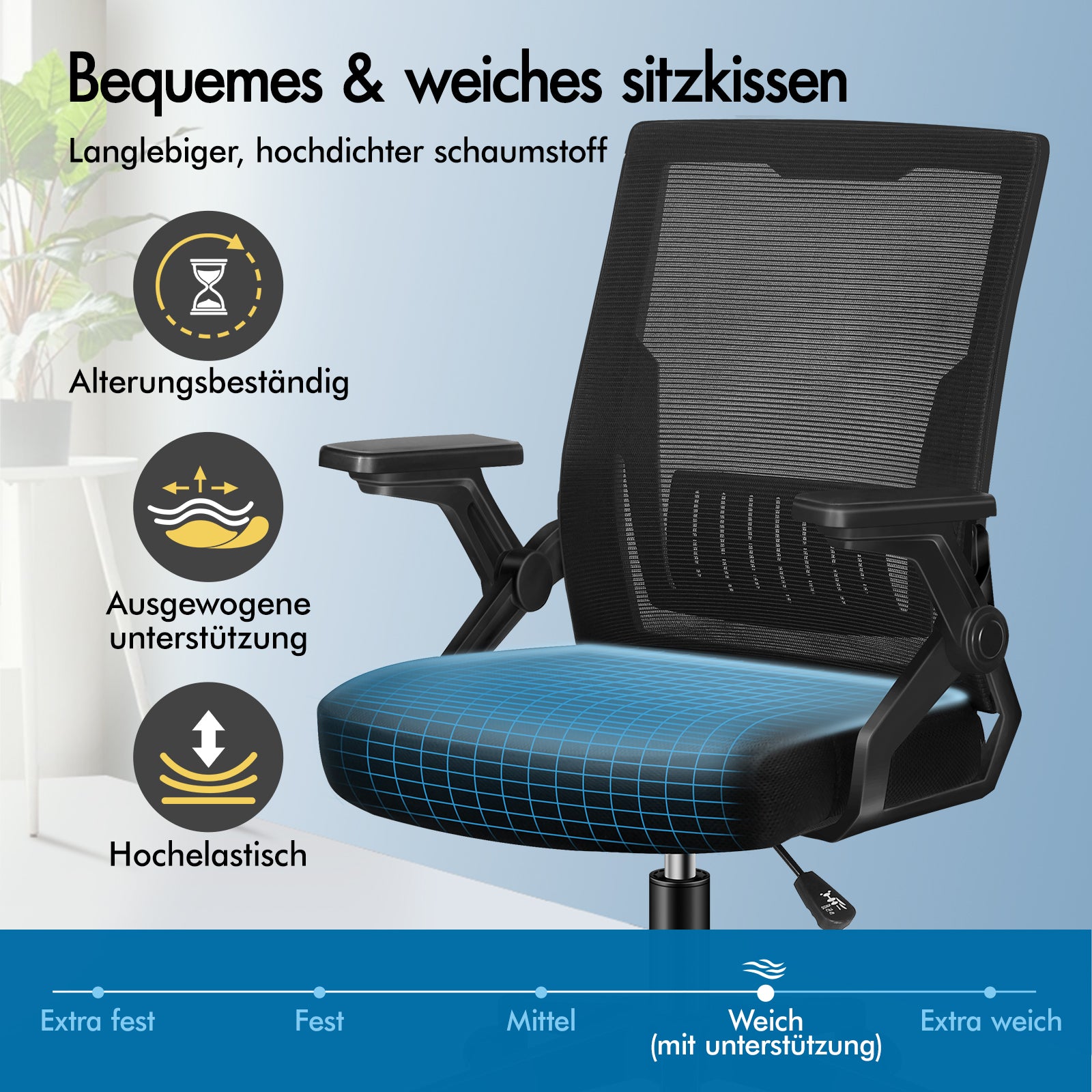 Dieser Computerstuhl verfügt über eine ergonomische S-Kurve ohne Kopfstütze für freie Schulterfreiheit und eine mittelhohe Rückenlehne für optimale Bewegungsfreiheit. Die hochwertige Netzpolsterung der Rückenlehne bietet optimalen Halt und beugt dem Durchhängen vor. Zusätzlich verfügt der Schreibtischstuhl über horizontal verstellbare und einziehbare Armlehnen, die sich ganz nach Wunsch unter Ihren Schreibtisch einfügen.