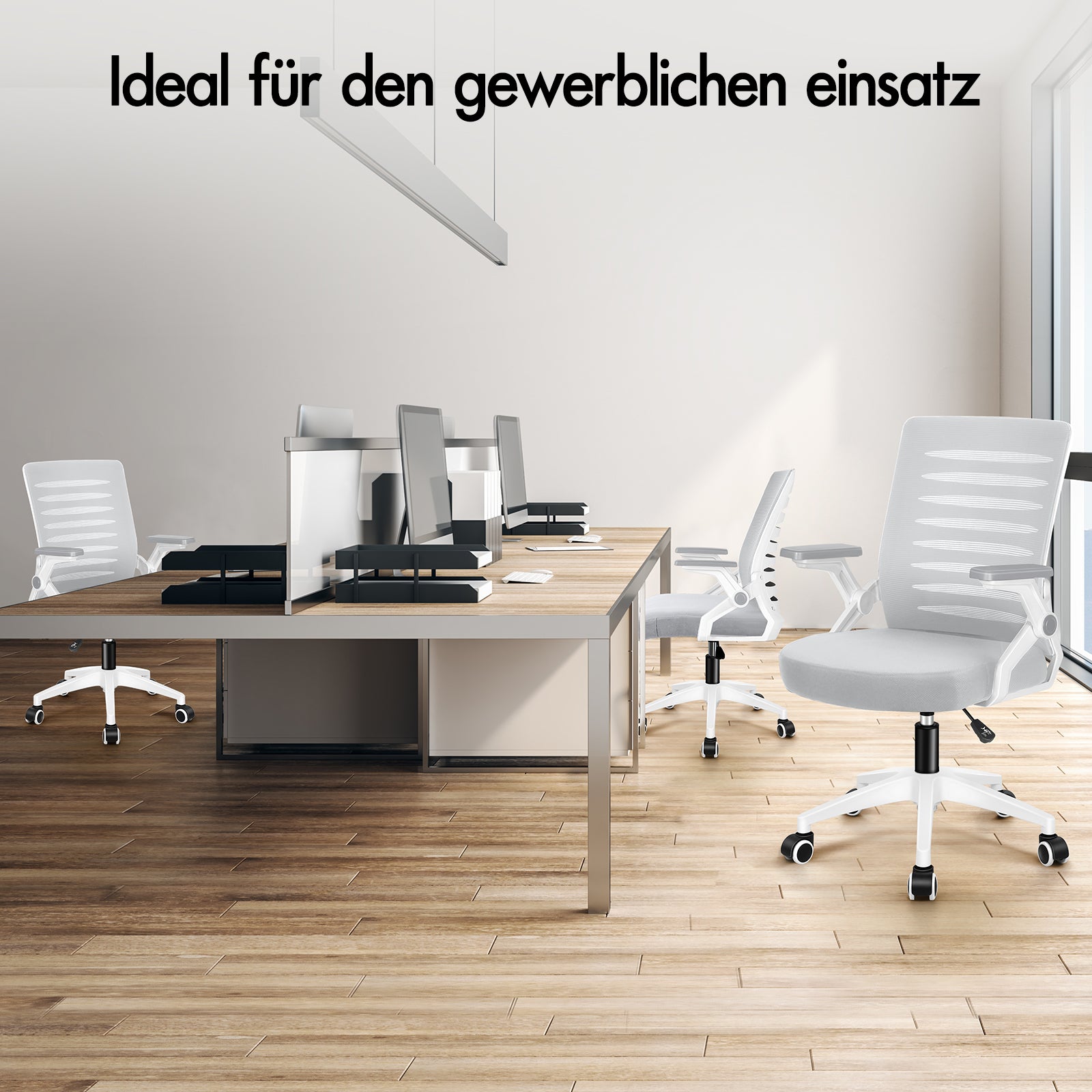 Spezifikationen * Intertek-geprüftes, hochwertiges Netzgewebe * SGS-geprüfte Gasdruckfeder, keine Explosionsgefahr * TÜV-geprüfte Lenkrollen * Dreischichtiger Sitz: Netzgewebe + elastischer Schaumstoff + Holzplatte * Hohe Gewichtskapazität: 180 kg * Garantie: 2 Jahre* Farbe: Weiß und Grau* Abmessungen: 63 x 63 x 90~100 cm* Detaillierte Größenangaben finden Sie auf dem Maßfoto