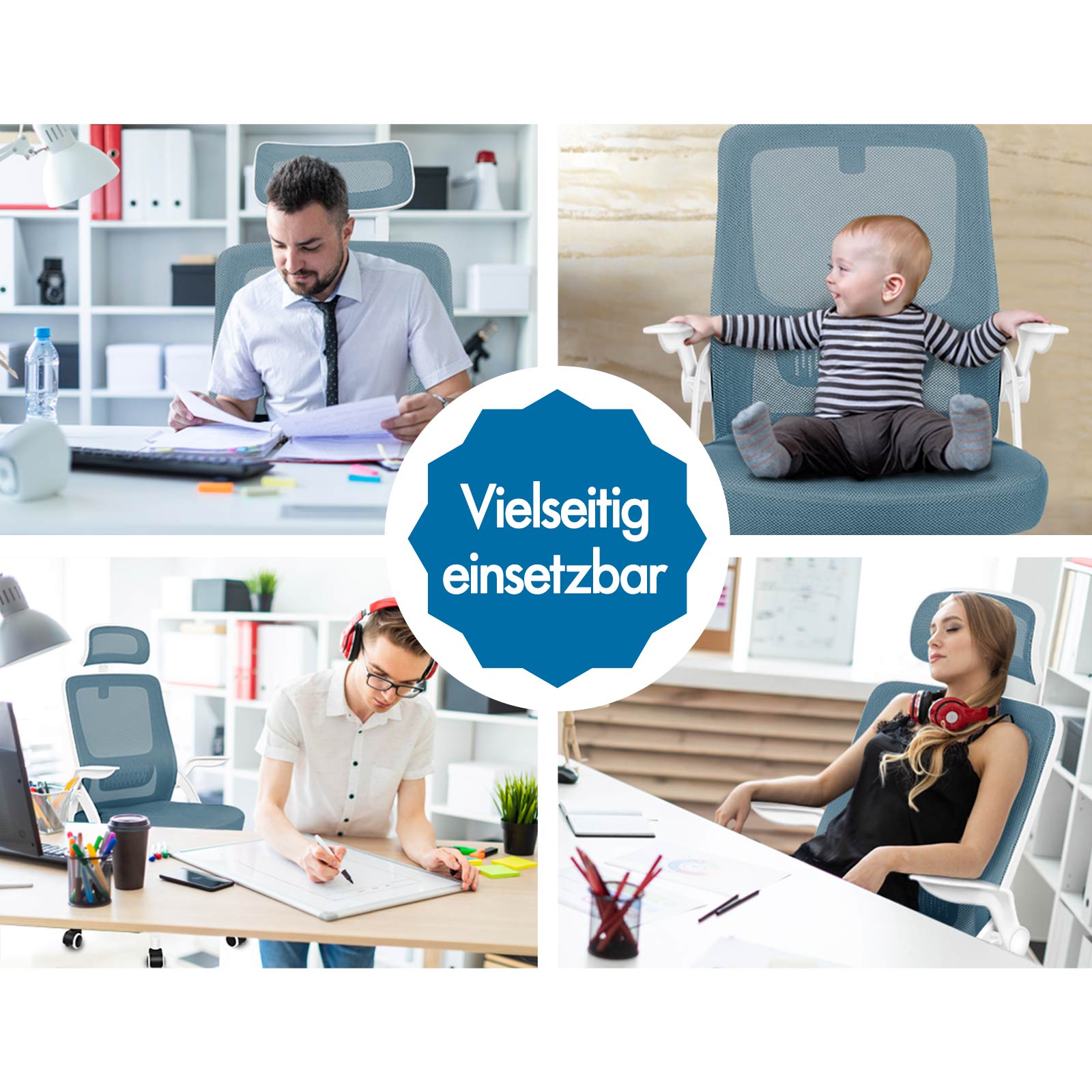 Spezifikationen *Von Intertek zugelassenes, erstklassiges Mesh-Gewebe * SGS-zugelassener Gaslift, keine Angst vor Explosionen * TÜV-zugelassene Lenkrollen * Dreischichtiger Sitz: Mesh-Gewebe + elastischer Schaumstoff + Holzbrett * Hohe Gewichtskapazität: 180kg * 2 Jahre Garantie* Farbe: Blau* Maße: 62 x 62 x 108~128cm* Detaillierte Größen finden Sie im Dimensionsfoto