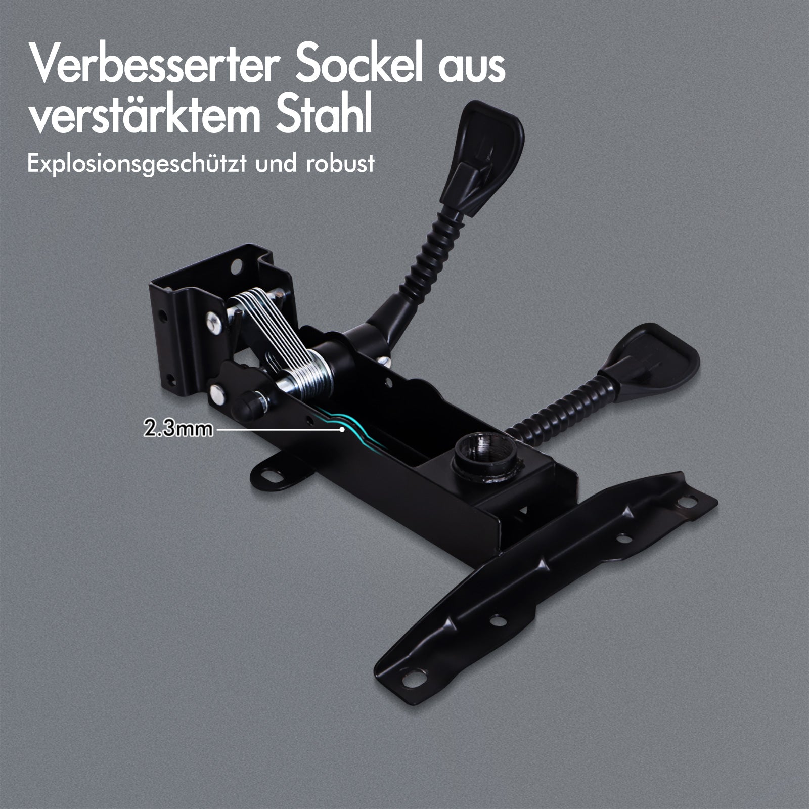 Spezifikationen * Von Intertek zugelassenes hochwertiges Netzgewebe * SGS-zugelassene Gasdruckfeder, keine Explosionsgefahr * TÜV-zugelassene Lenkrollen * Dreischichtiger Sitz: Netzgewebe + elastischer Schaumstoff + Holzplatte * Hohe Gewichtskapazität: 180 kg * 2 Jahre Garantie* Farbe: Schwarz* Abmessungen: 72 x 72 x 110~135 cm* Detaillierte Größen finden Sie auf dem Maßfoto