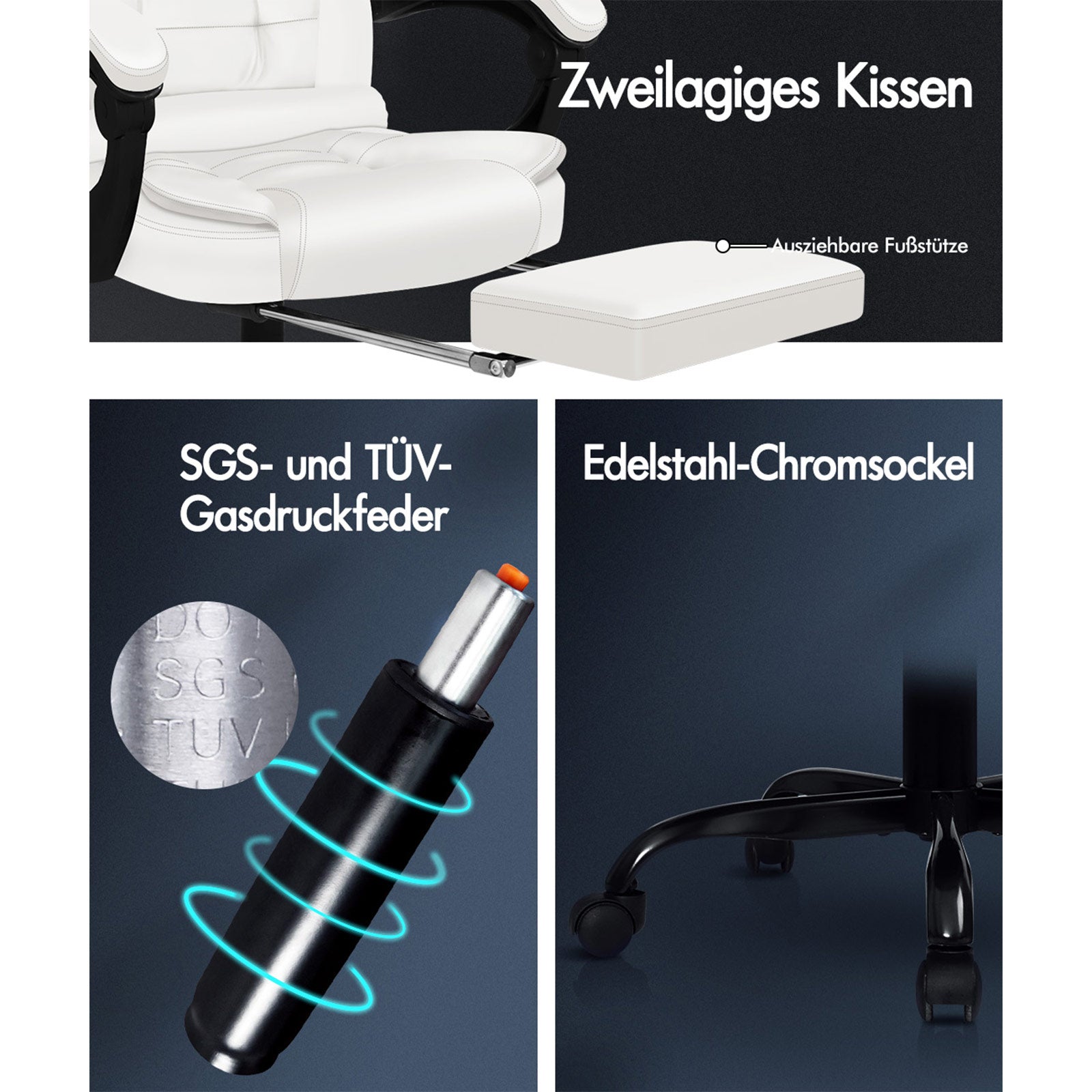 ALFORDSON Massage-Bürostuhl mit Fußstütze, Executive-Gaming-Sitz, PU-Leder Weiß