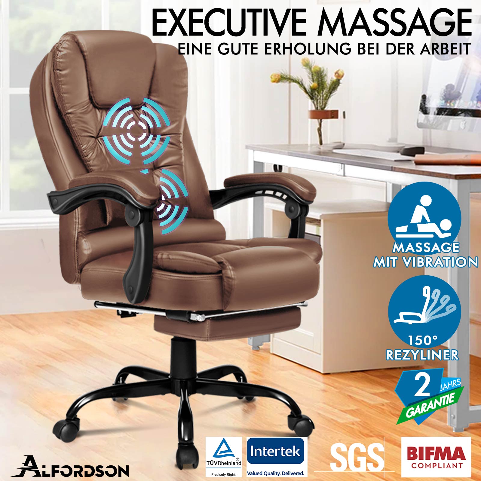 ALFORDSON Massage-Bürostuhl mit Fußstütze, Executive-Gaming-Sitz, PU-Leder