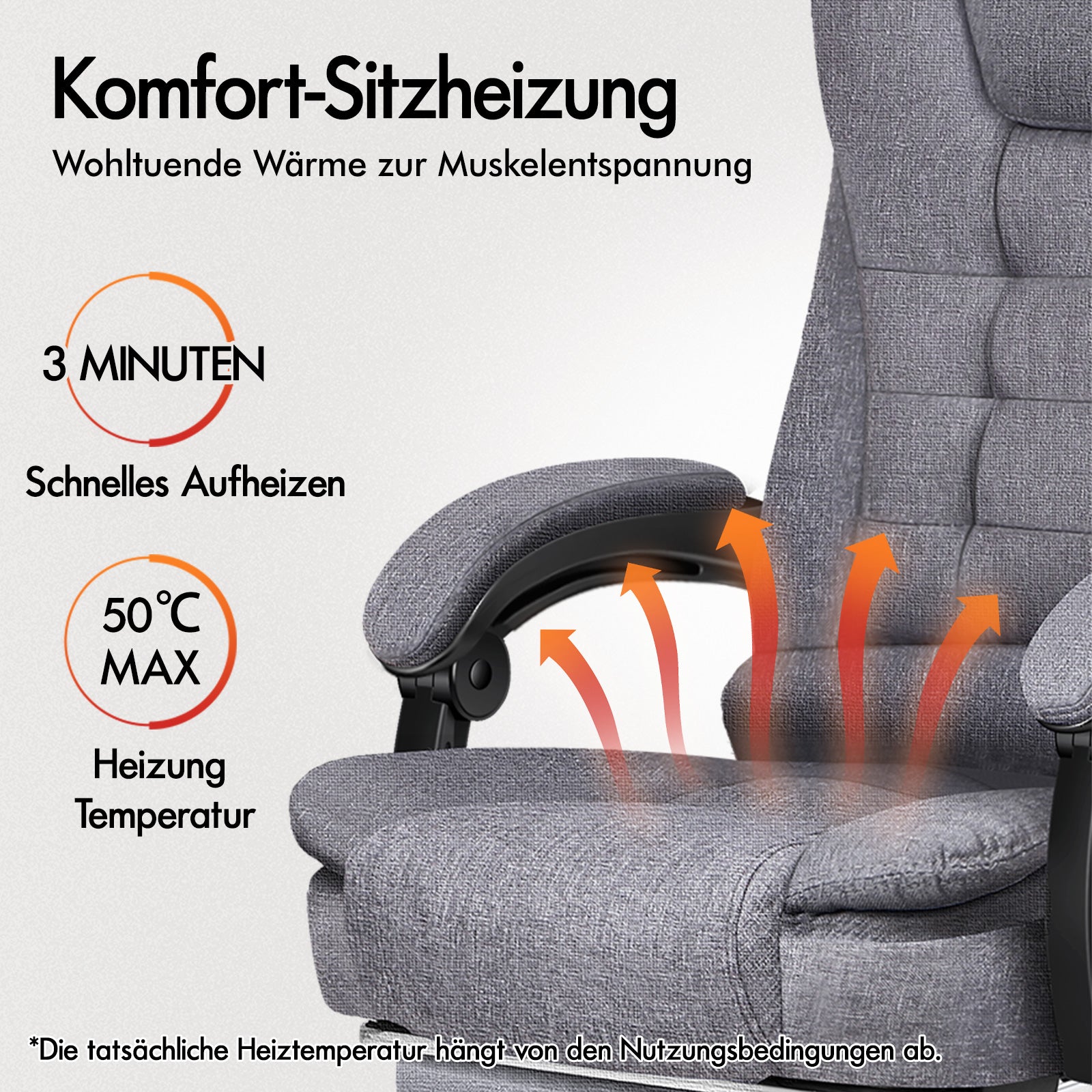 Spezifikationen * Von Intertek zugelassenes, hochwertiges PU-Leder/Leinenstoff * SGS-zugelassener Gaslift, keine Angst vor Explosion * TÜV-geprüfte Lenkräder * Dreischichtiger Sitz: PU-Leder/Atmungsaktives Leinengewebe + elastischer Schaumstoff + robustes Holzbrett * Hohe Tragfähigkeit: 180 kg * 1 Jahr Garantie * Farbe: Stoff Grau