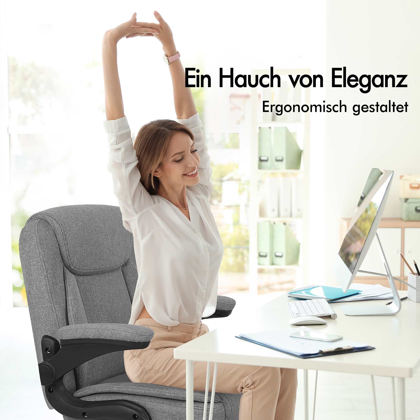 Eigenschaften* S-Kurven-Design, optimale Konturierung Ihres Körpers* Keine Kompromisse bei den Materialien* Wir verwenden keinen wiederverwerteten Schaumstoff und keine Holzplatten * Großzügige Schaumstoffpolsterung â€?eliminiert den Druck auf Rücken und Schultern * Mittlere Rückenpartie â€?einfache Bewegung * Verstellbare Armlehnen - platzsparend& leichtgängig* Ganzstück-Formschaum â€?bessere Gewichtsverteilung und Unterstützung * Deluxe-Neigungsverstellung - spannung einstellbar * 360-Grad-Schwenk - butterweich * Stabiler Chromfuß - schmutzabweisender als Kunststofffüße *Premium Universalrollen - bodenschonend und leichtgängig * Ideal für den Einsatz im Haushalt und im Gewerbe