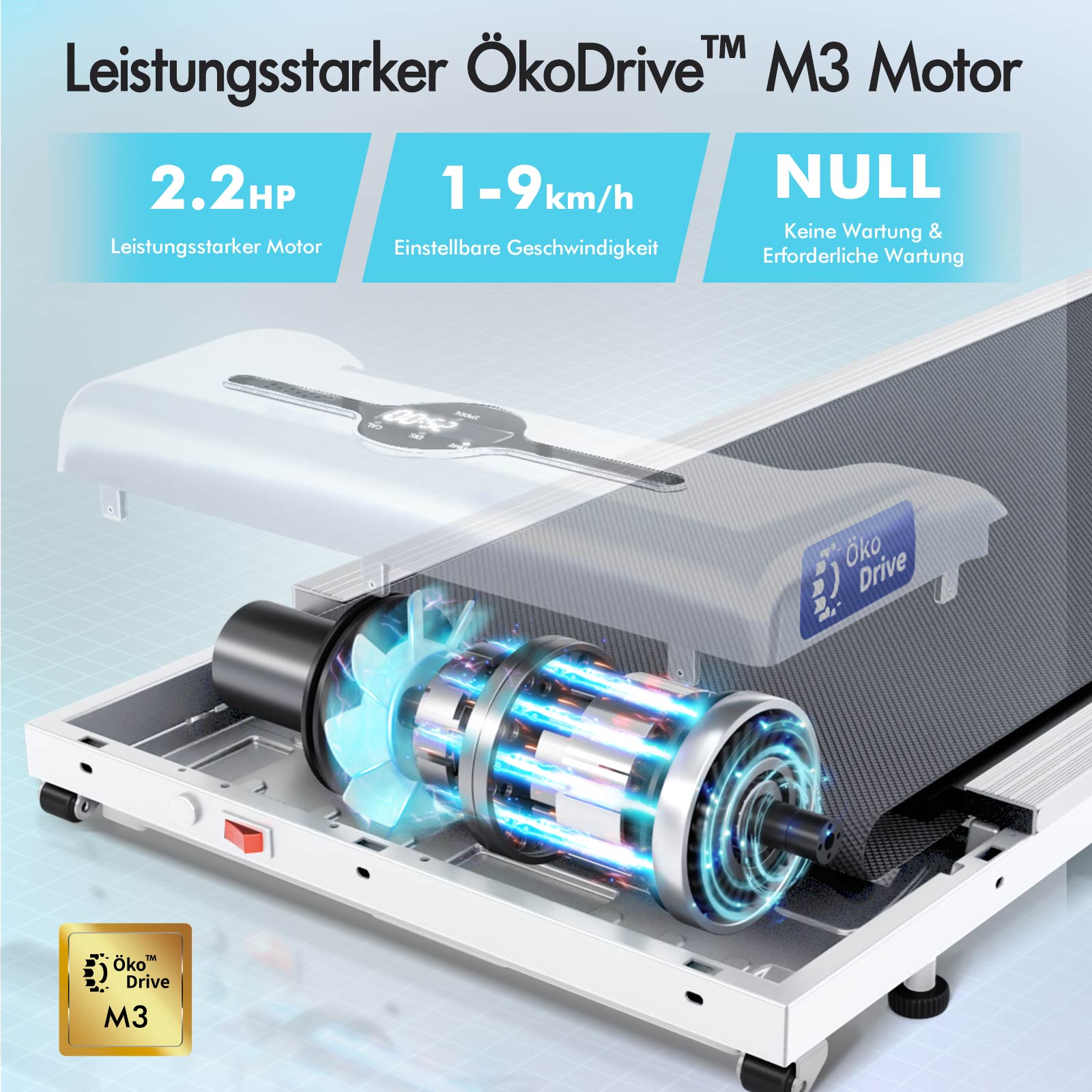 * 2,2 PS starker und energieeffizienter ÖkoDriveTM-Motor * Stabiler pulverbeschichteter Stahlrahmen* Kabellose Fernbedienung: Ein/Aus, Geschwindigkeitsregelung* Rutschfestes und verschleißfestes Laufband mit Diamantstruktur* Stoßdämpfung* Digitale LED-Anzeige – Geschwindigkeit, Distanz, Zeit und Kalorien* Bluetooth-APP-Steuerungsfunktion * Eingebauter Bluetooth-Lautsprecher* Leichtgängige Räder für Mobilität