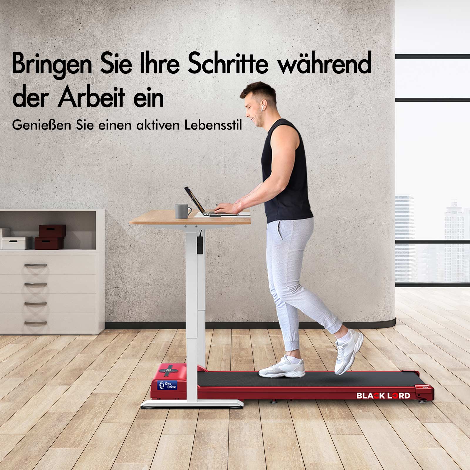BLACK LORD Elektrisches Laufband Geh-Pad Zuhause Büro Fitnessstudio Fitness, Rot