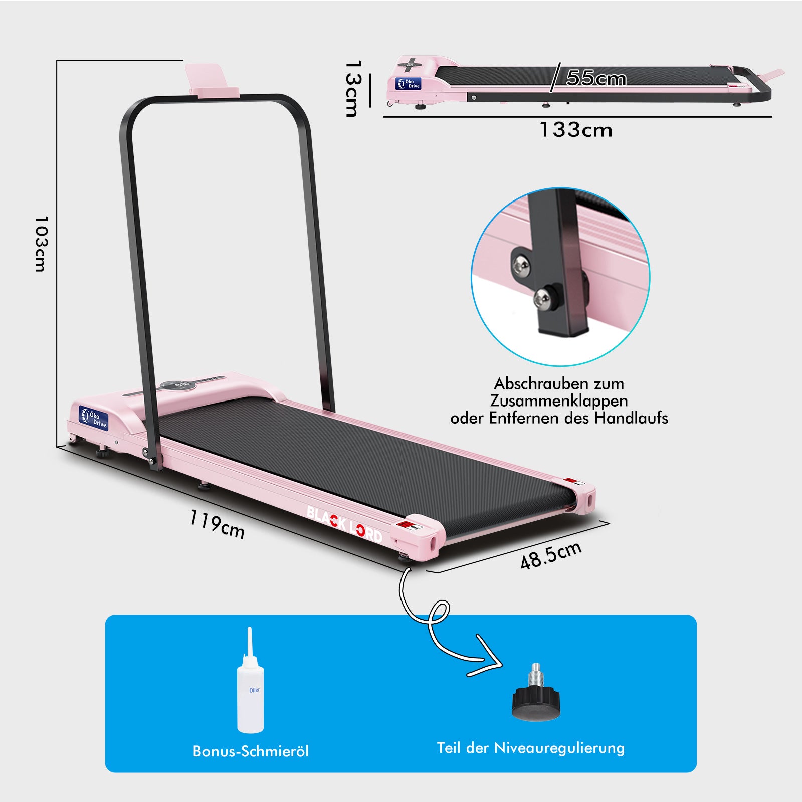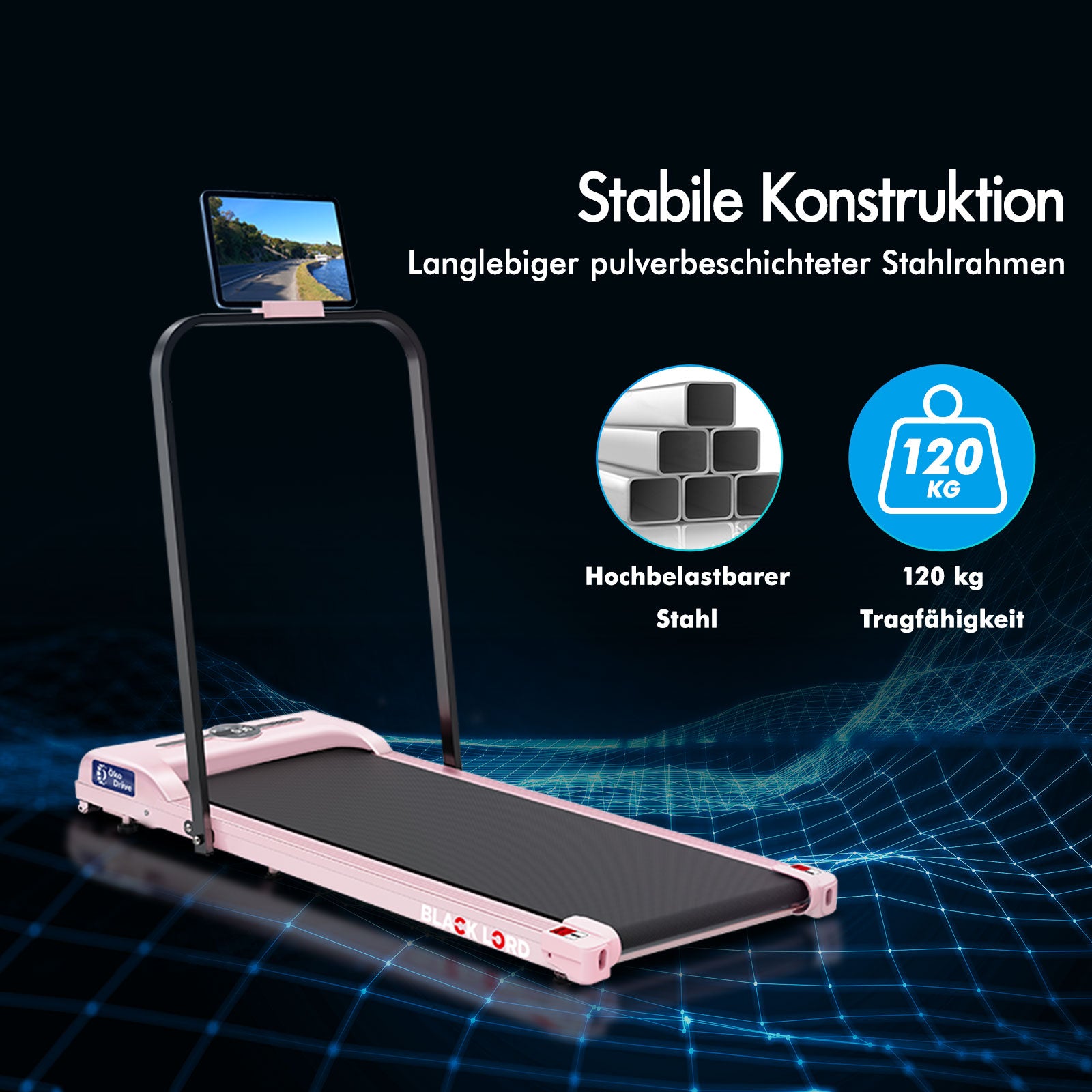 BLACK LORD Laufband Elektrisch Laufkissen Zuhause Büro Fitnessstudio Faltbar, mit Griff, Rosa