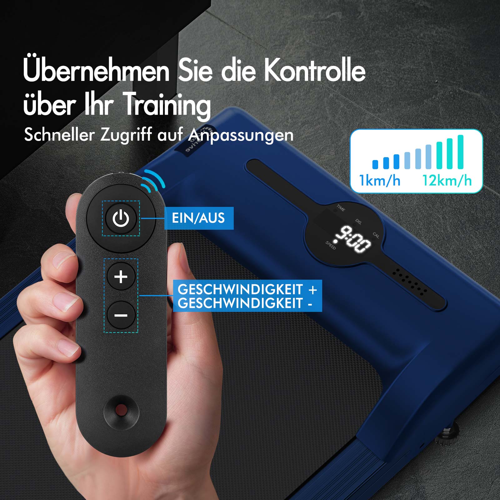 * 2,2 PS starker und energieeffizienter ÖkoDriveTM-Motor * Stabiler pulverbeschichteter Stahlrahmen* Kabellose Fernbedienung: Ein/Aus, Geschwindigkeitsregelung* Rutschfestes und verschleißfestes Laufband mit Diamantstruktur* Stoßdämpfung* Digitale LED-Anzeige – Geschwindigkeit, Distanz, Zeit und Kalorien* Bluetooth-App-Steuerungsfunktion * Eingebauter Bluetooth-Lautsprecher* Praktische Tablet-/Telefonhalterung* Zusammenklappbares und abnehmbares Handlaufdesign – einfache Lagerung* Leichtgängige Räder für Mobilität