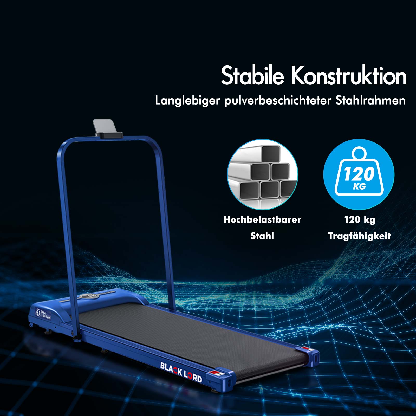 BLACK LORD Laufband Elektrisch Laufkissen Zuhause Büro Fitnessstudio Faltbar, mit Griff, Blau